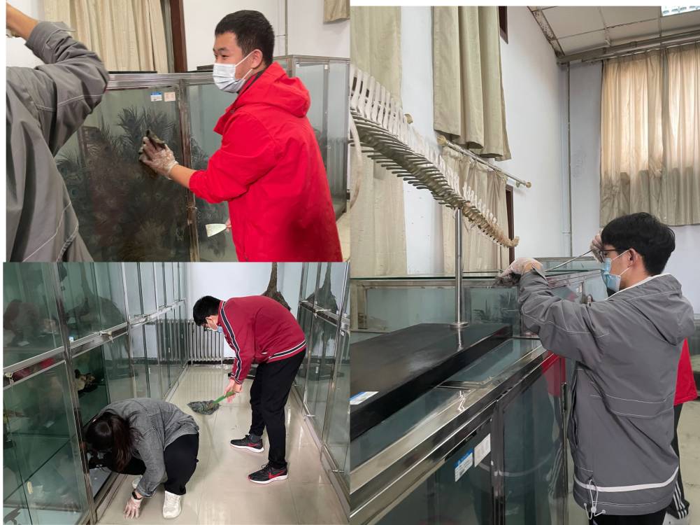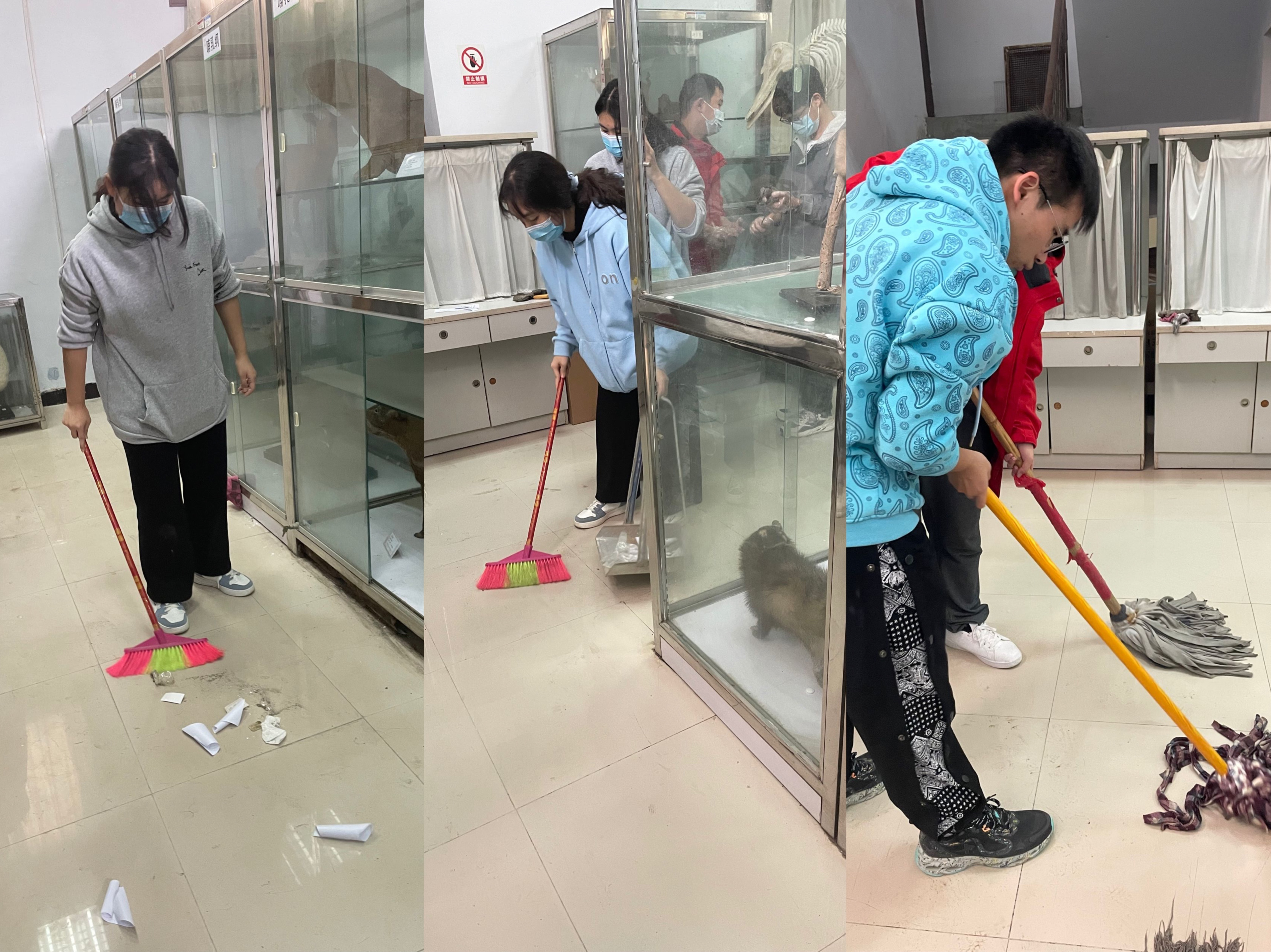 生科21–1(全免)班的同学主要负责整理哺乳纲、爬行纲、鸟纲及脊椎动物类别的标本整理。俯下身来,同学们将崭新的标签更换在各个标本前;踮起脚尖,同学们认真清理每一处灰尘。在班长刘畅的带领下,生科(全免)班共八组50名同学擦玻璃、扫地、更换标签、整理排列标本等工作顺利完成。享受劳动的同时,同学们也学习到许多课本之外的知识,可谓一举多得。看着整洁的标本室,同学们都绽放出开心的笑容,积极向上的生科(全免)21-1班在这次活动中展现出的劳动精神定会为beats365中文官网的发展增光添彩!