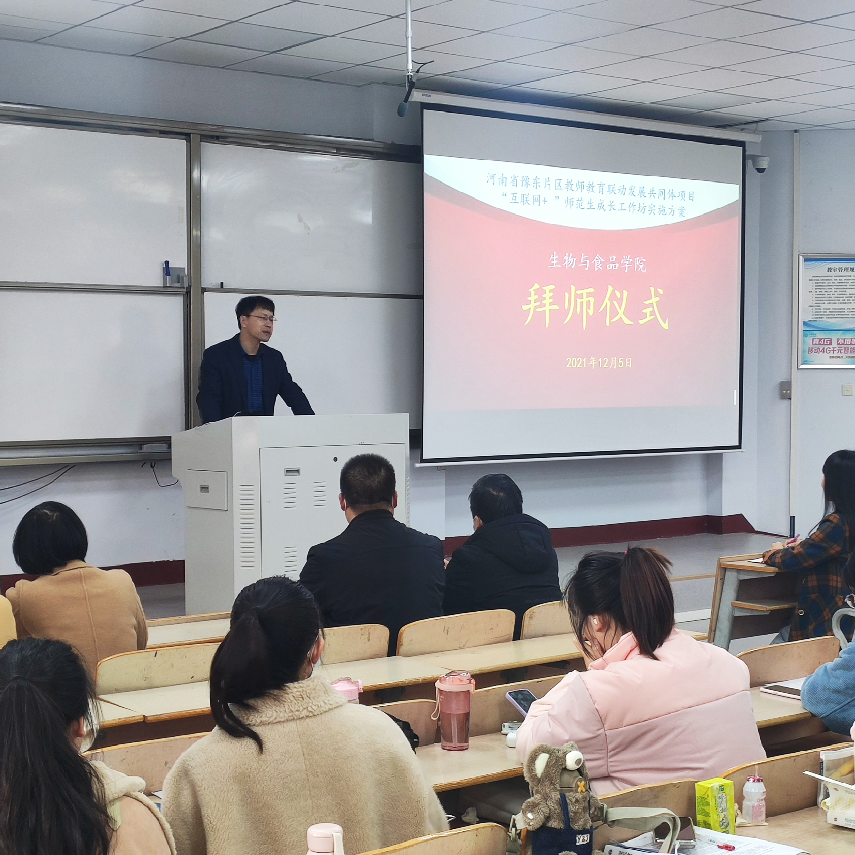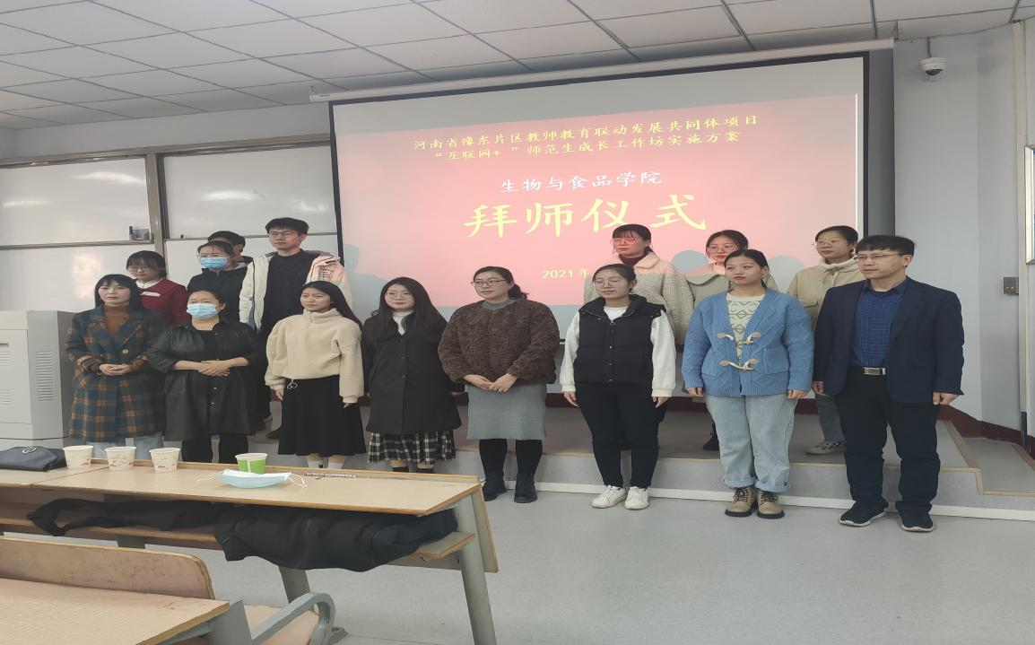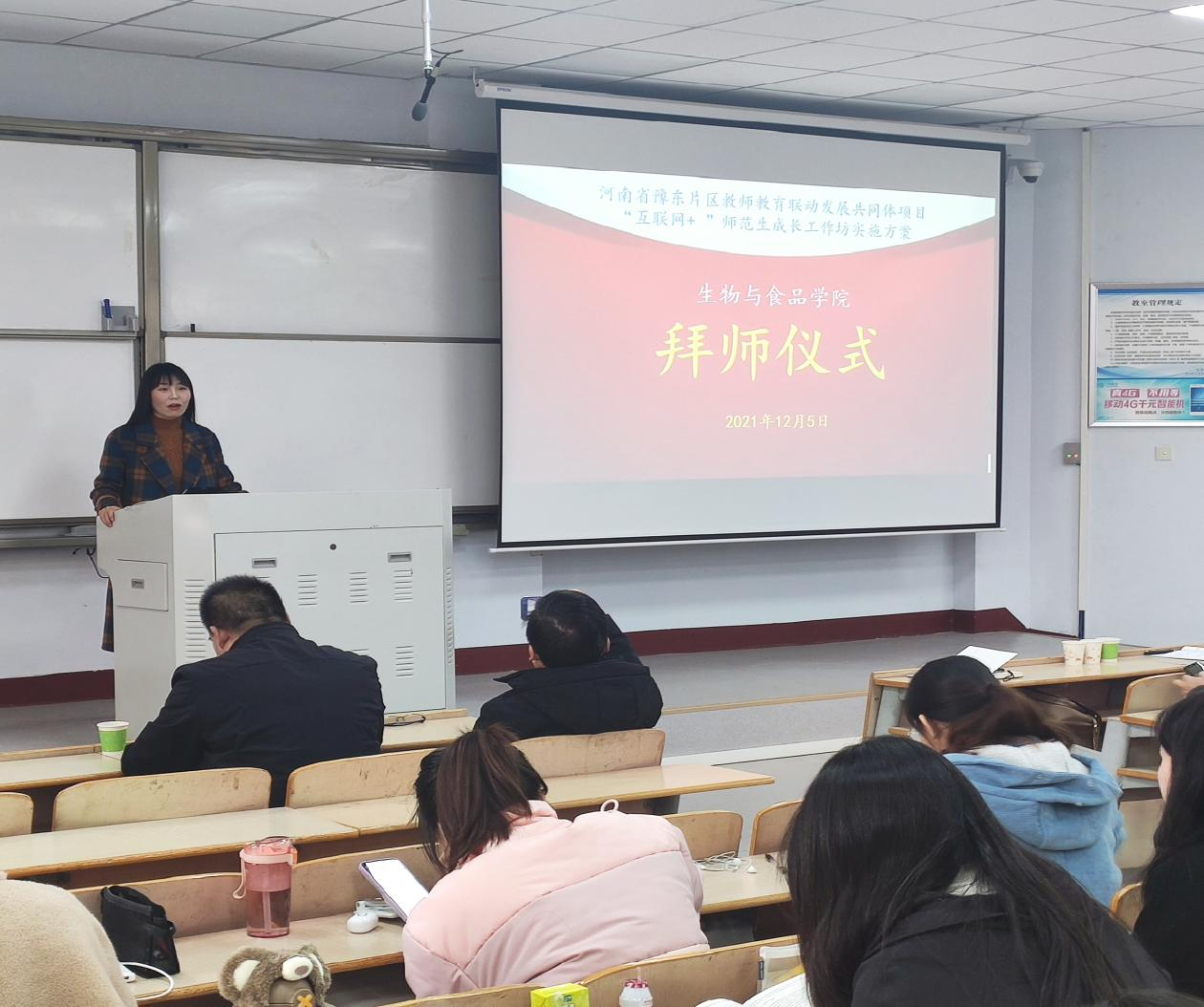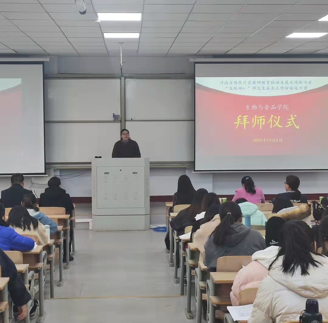 12月5日,河南省豫东片区教师教育联动发展共同体项目,2021年度“互联网+”师范生教学技能培养中员工物工作坊启动暨拜师仪式在beats365中文官网1号教学楼208举行。参加会议的有中员工物工作坊校内首席专家、beats365中文官网经理周庆峰,商丘市教体局基础教研室教研员张静和来自商丘市第一中学、商丘市第六中学、商丘市第八中学、商丘市实验中学、商丘市外国语中学的十名一线初中生物教师;参加会议的还有19级生物科学专业127名员工。本次会议由郝鹏老师主持。