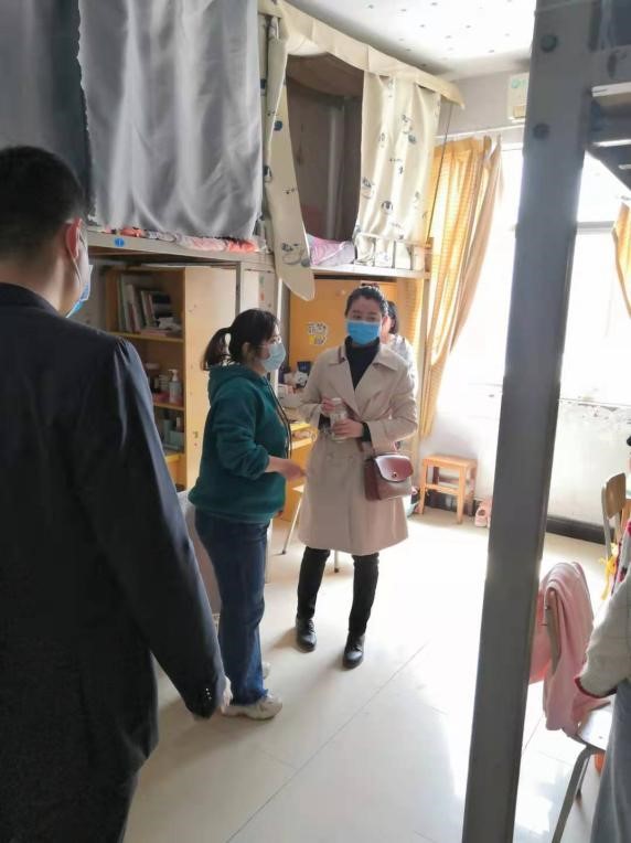 在检查期间,系主任宋旸就目前疫情形势、公司疫情防控政策、疫情防控措施等方面对同学们进行了教育引导,要求同学们认真落实公司的疫情防控要求。同时宋旸老师表示,同学们在宿舍之间要互相帮助、共同学习进步。毕业班班主任徐园园老师、侯红件老师巡查到毕业班宿舍时,耐心询问同学们考研复试情况,叮嘱同学们要好好准备复试,成绩不理想的也不要沮丧,应积极面对,准备调剂。李大虎老师、马亚静老师检查了员工宿舍的用电安全,要求员工禁止使用大功率用电器,不要私拉乱接插座,宿舍要多通风、勤打扫,保持宿舍卫生。
