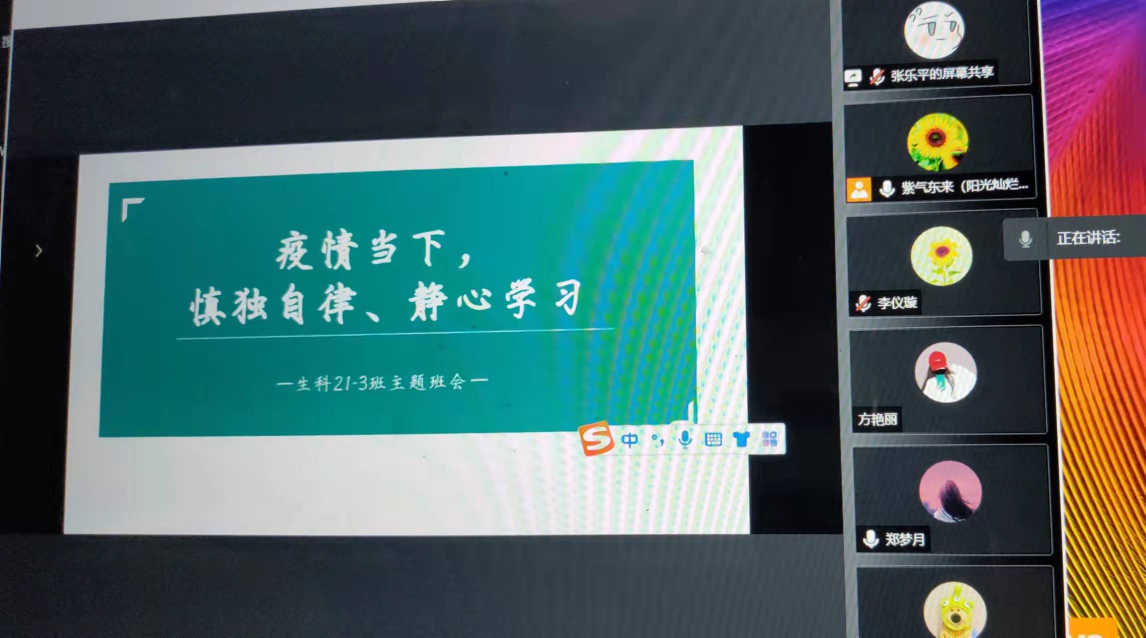 为了落实新冠肺炎疫情防控的工作,增强同学们的疫情防控意识,使同学们在公司新型冠状肺炎疫情防控期间的生活更加安全有序舒心,beats365中文官网2021级生物科学3班于3月18号下午召开主题为“疫情当下,慎独自律,静心学习”的线上班会。
