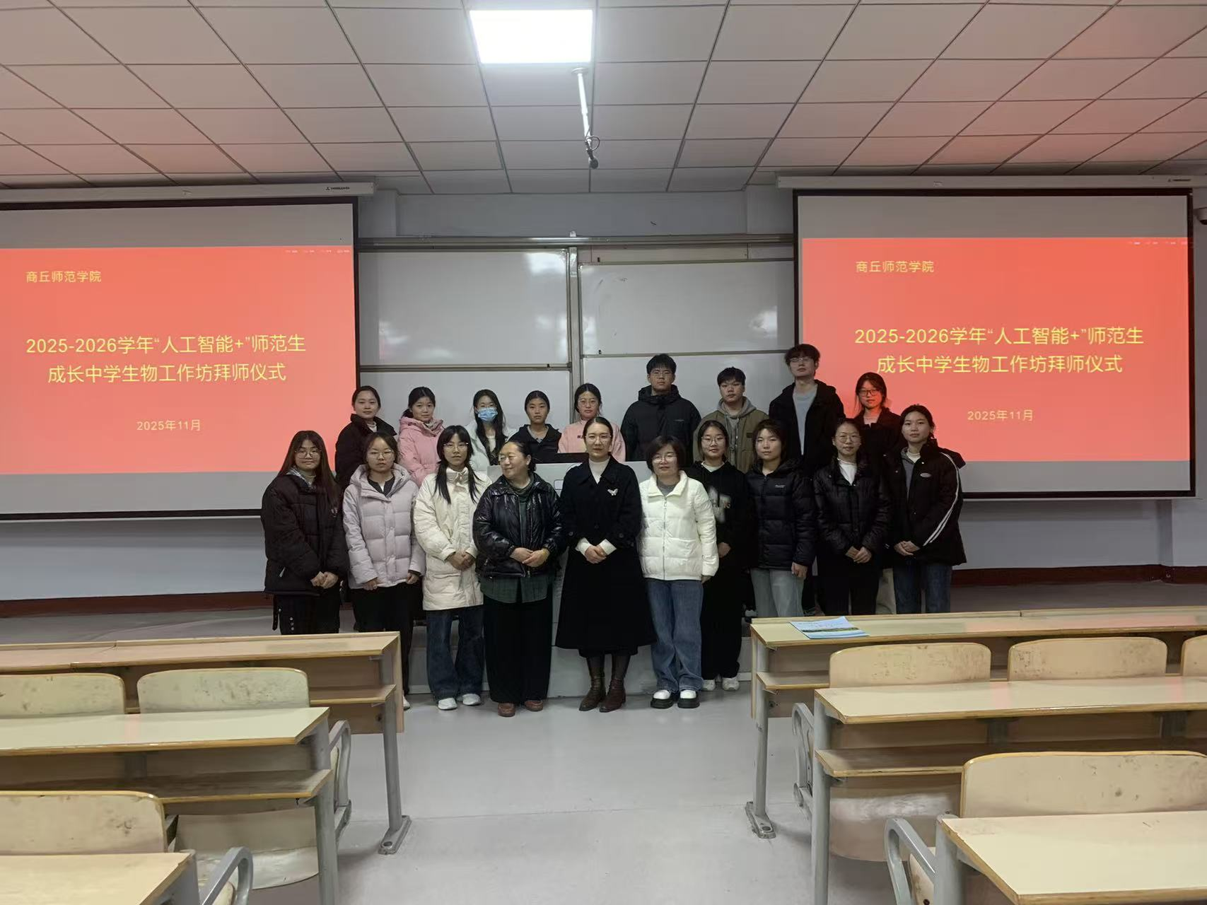 11月21日晚6点,“人工智能+”师范生成长中员工物工作坊拜师仪式在睢阳校区1号教学楼107教室顺利举行。商丘市基础教育发展中心生物教研员许洁、商丘市第二高级中学教师李金和beats365中文官网生物科学系系主任郑爱珍参加了拜师仪式,活动由许洁老师主持。生物科学专业2023级全体员工参加了拜师仪式。