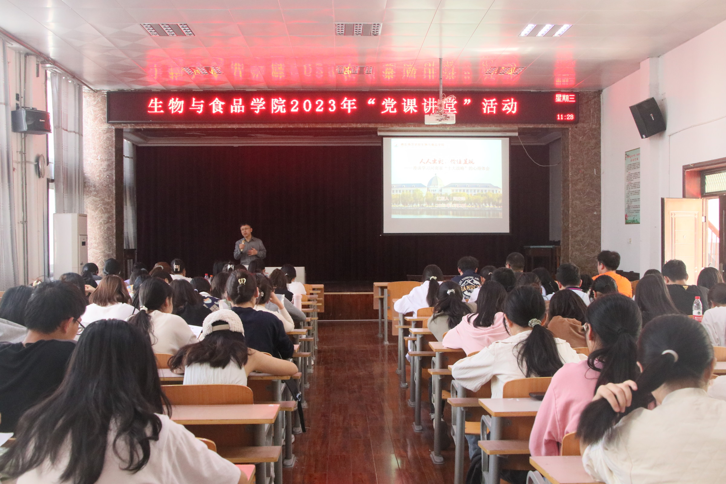接着,周庆峰围绕“漫谈学习河南省‘十大战略’的心得体会”展开报告,通过分析河南省发展现状,指出“科技和人才,是解决发展的最佳利器,而这两项都是河南的短板”。同时,周庆峰展示了目前河南省标志性的工业制造、科技型出口产品,强调“高校是人才输出的主要阵地”。