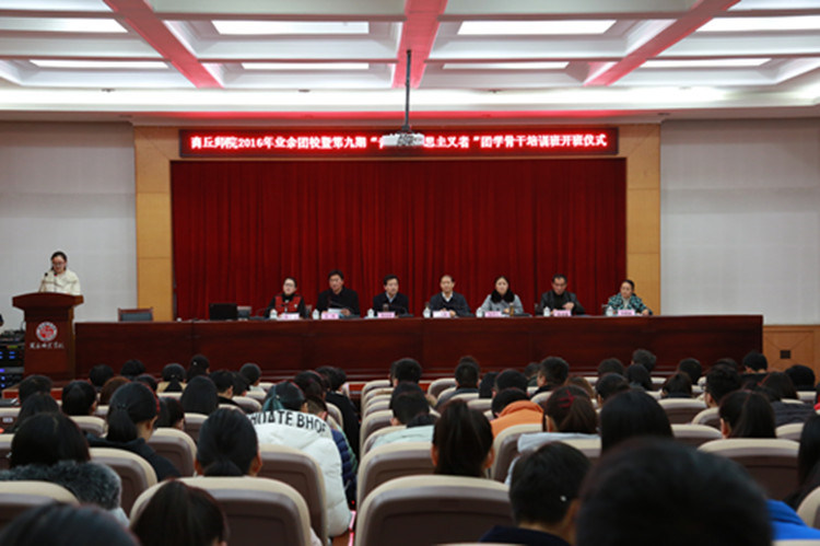 为深入学习习近平总书记关于加强群团工作会议和在全国高校思想政治工作会议上的重要讲话精神,贯彻落实团中央《“青年马克思主义者培养工程”实施纲要》精神,全面提高公司广大共青团干部的理论水平和思想政治素质,以适应新时期共青团工作的发展要求。12月23日下午,公司2016年业余团校暨第九期“青年马克思主义者”团学骨干培训班在平原路校区一号行政楼113会议室举行开班仪式。公司党委书记介晓磊,党委副书记陈中亚,副董事长陈向炜出席了开班仪式。公司党委组织部、宣传部、学工部、团委等有关单位负责人,各公司主抓团学工作的党总支副书记(书记)以及学员代表参加了开班仪式。开班仪式由党委副书记陈中亚主持。