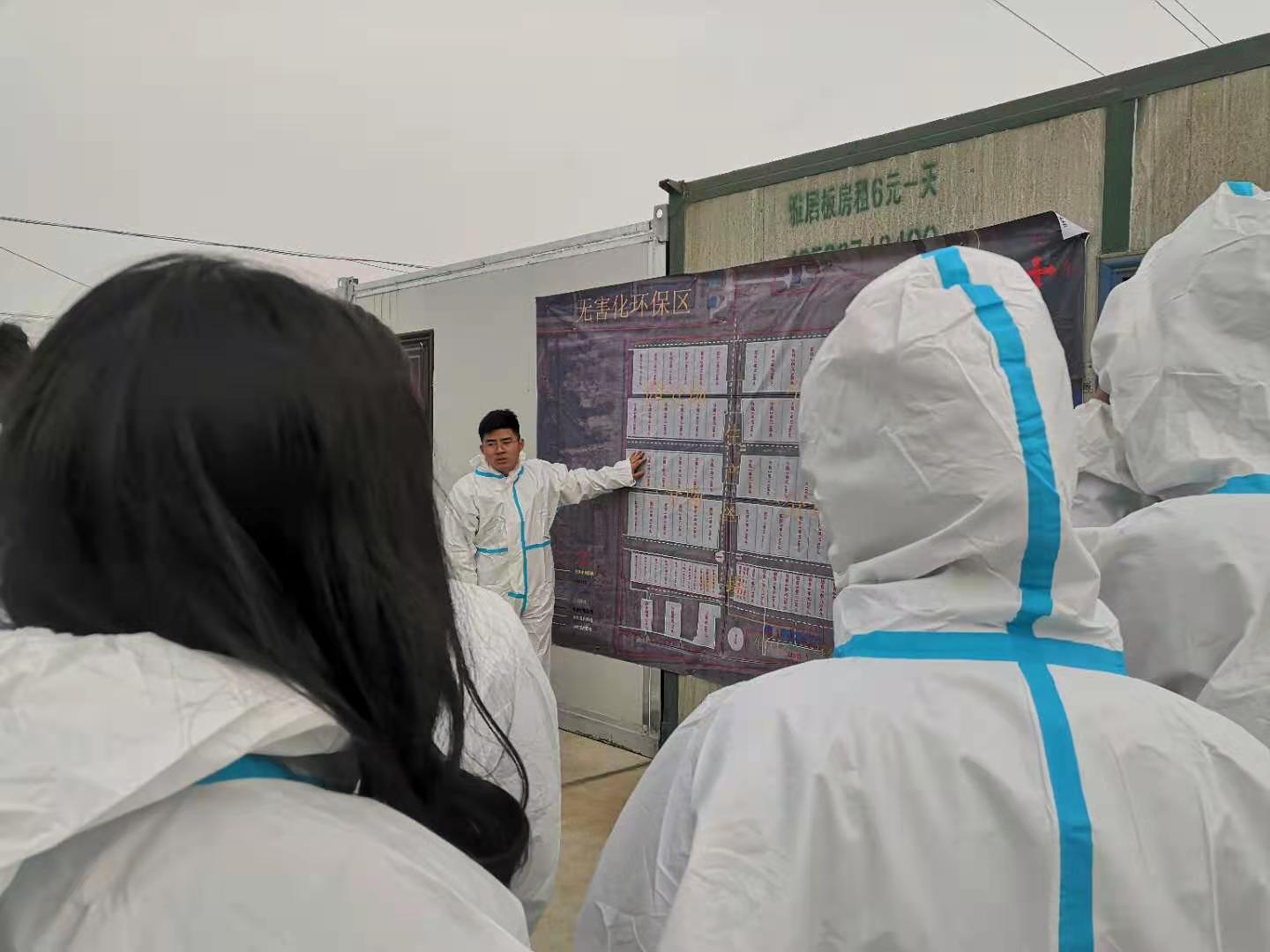 陈超越场长首先介绍了该场“三级洗消、五区五流”的生产管理模式,从原料、人员入场、洗消、工作等流程进行了详细讲解,同学们就实习要求和在场区的日常生活、具体工作内容、饮食住宿条件等进行了咨询和交流。陈超越场长是公司动物科学专业2016级员工,毕业一年被任命为二分场场长,为动物科学专业的员工树立了专业信心。