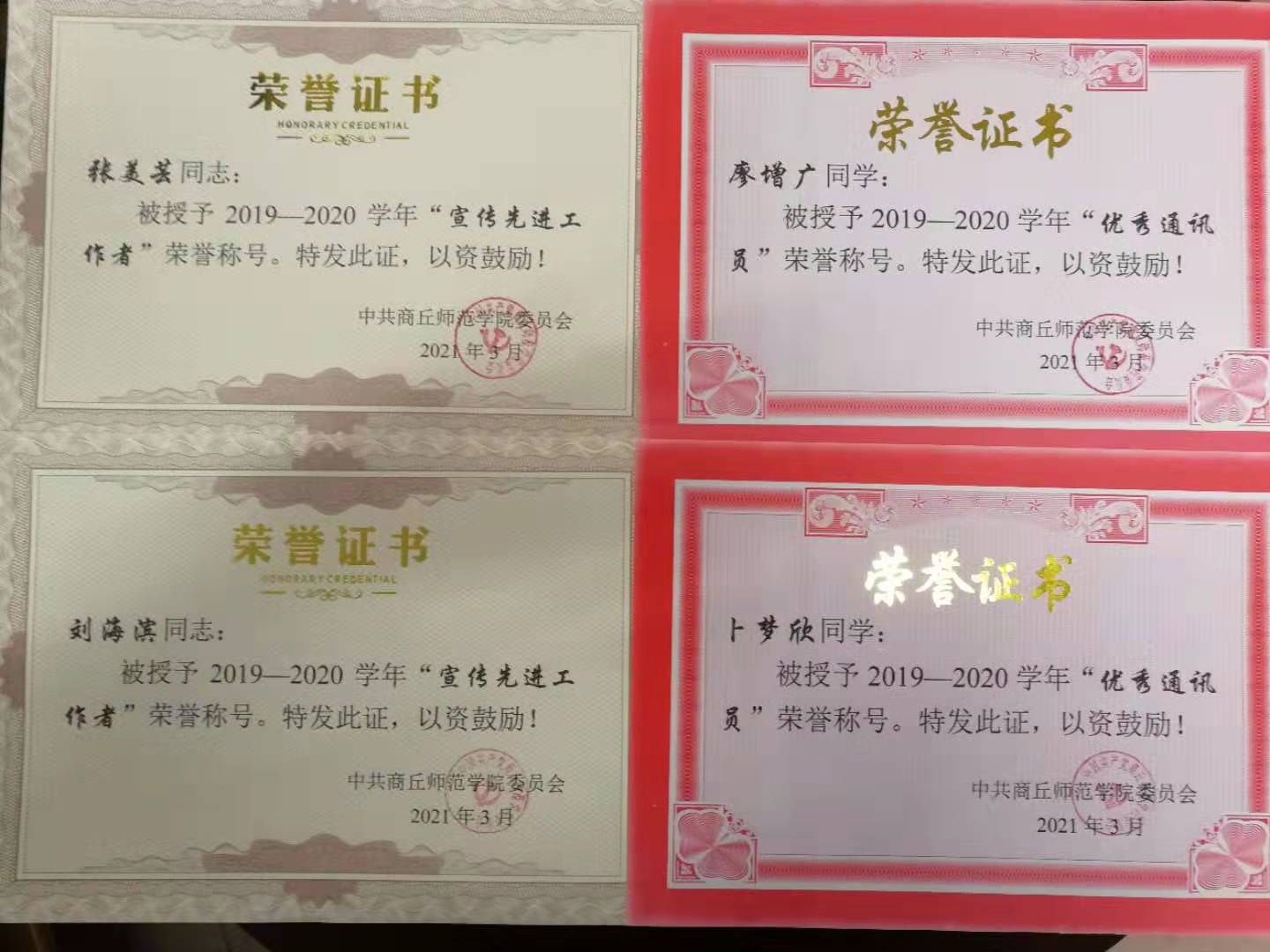 近日,公司党委下发《关于表彰2020年度十佳新媒体、宣传先进个人的表彰决定》,beats365中文官网微信公众号被评为2020年度“十佳新媒体”荣誉称号;教师张美芸、刘海滨被评为“宣传先进工作者”荣誉称号;员工卜梦欣、廖增广被评为“优秀通讯员”荣誉称号。