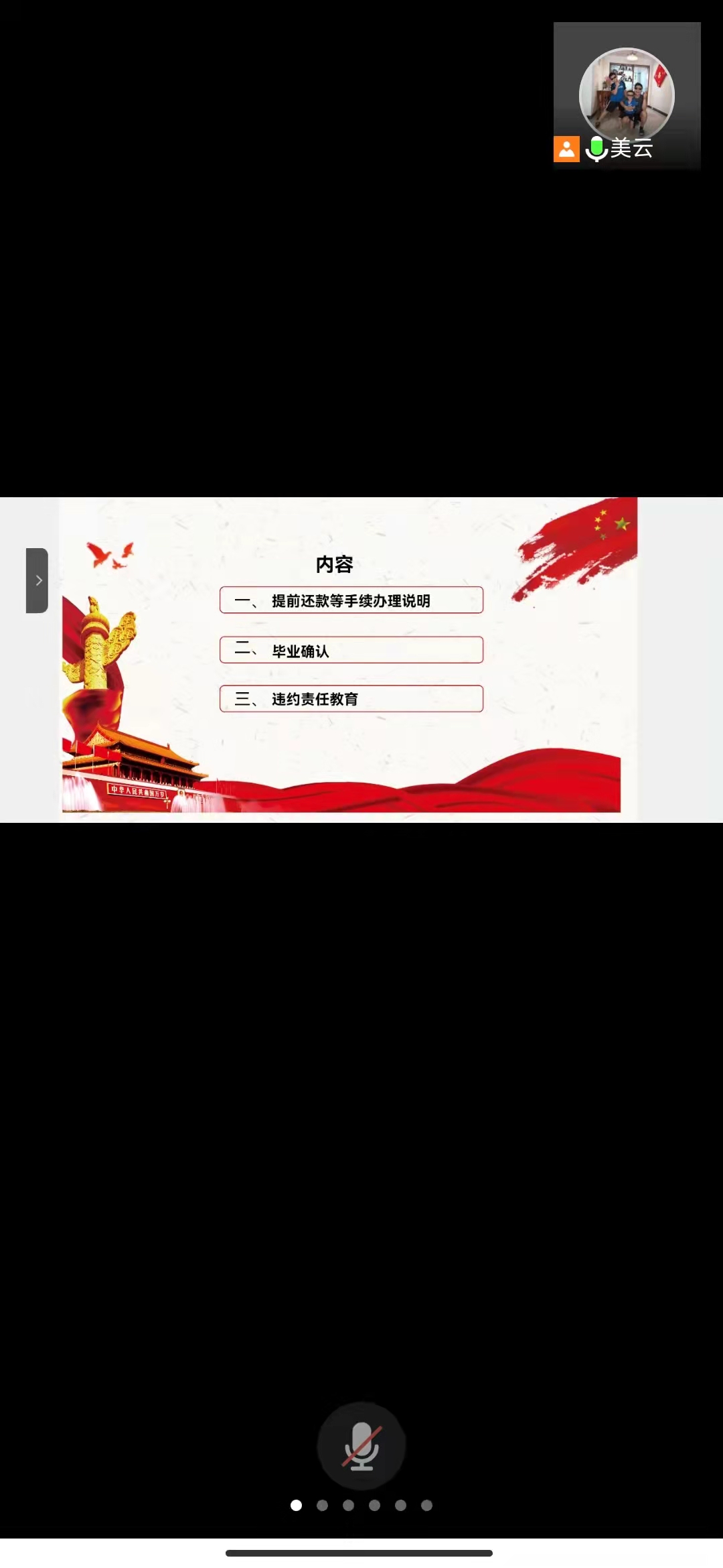 为进一步加强贷后管理工作,帮助毕业生充分认识了解助学贷款的还款流程,确保2022届贷款毕业生离校前、后办理助学贷款相关手续的顺利进行,beats365中文官网于2022年4月18日在线上召开了2022届贷款毕业生进行毕业确认以及毕业教育会议。本次会议由公司2022届毕业班辅导员张美芸主持,公司2022届全体贷款毕业生参加此次会议。