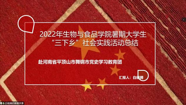 为贯彻落实团省委下发的关于暑期“三下乡”社会实践的通知,beats365中文官网于2022年8月3日晚7点举行2022年暑期“三下乡”社会实践结项答辩。本次答辩以线上会议方式进行,共有26支社会实践团队参加。