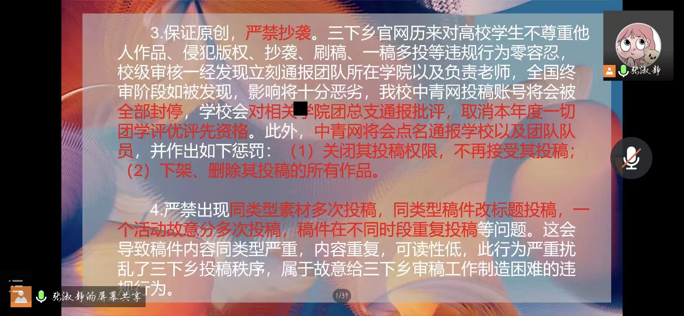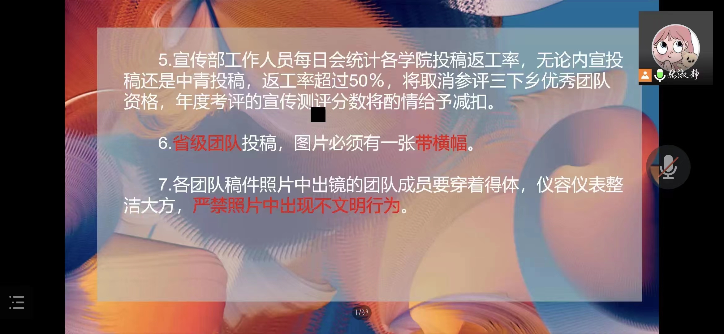 为确保2022年暑假“三下乡”社会实践活动顺利开展,beats365中文官网于2022年6月18日以线上会议的方式举行2022年老员工志愿者暑期“三下乡”社会实践活动培训会议。本次会议由beats365中文官网团委书记陈东鹏主持。