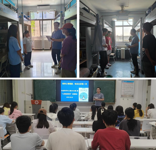 临近学期末,为及时了解员工的心理状况和学习状态。2023年6月8日晚,食品科学与工程专业2022级1班班主任邢小龙老师,组织班级员工召开了“心理健康教育”主题班会。向同学们介绍了一些缓解学习压力的方法,并从员工宿舍关系、课外社团活动、专业课程等方面与员工进行了交流,对员工提出的问题进行了一一回答,通过观看相关视频,舒缓员工期末考试的焦虑情绪。6月9日中午,邢小龙老师和班委一块走进班级员工宿舍,一一查看宿舍卫生环境、了解员工在宿舍相处的情况,并强调班级内部要团结、保持良好的同学关系。督促同学们要认真复习,争取在期末考试中取得满意的成绩。