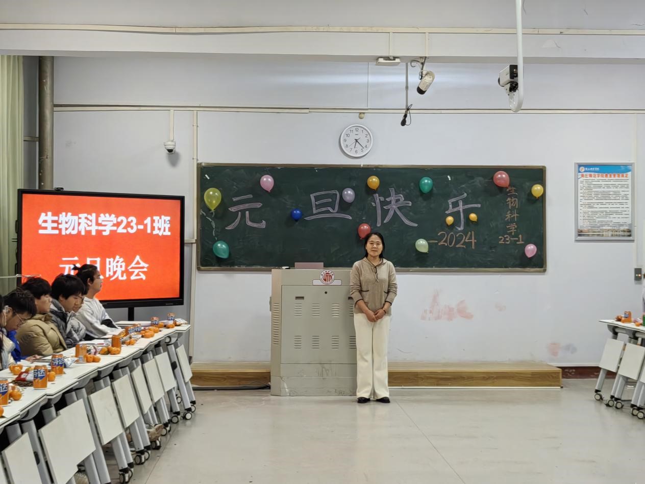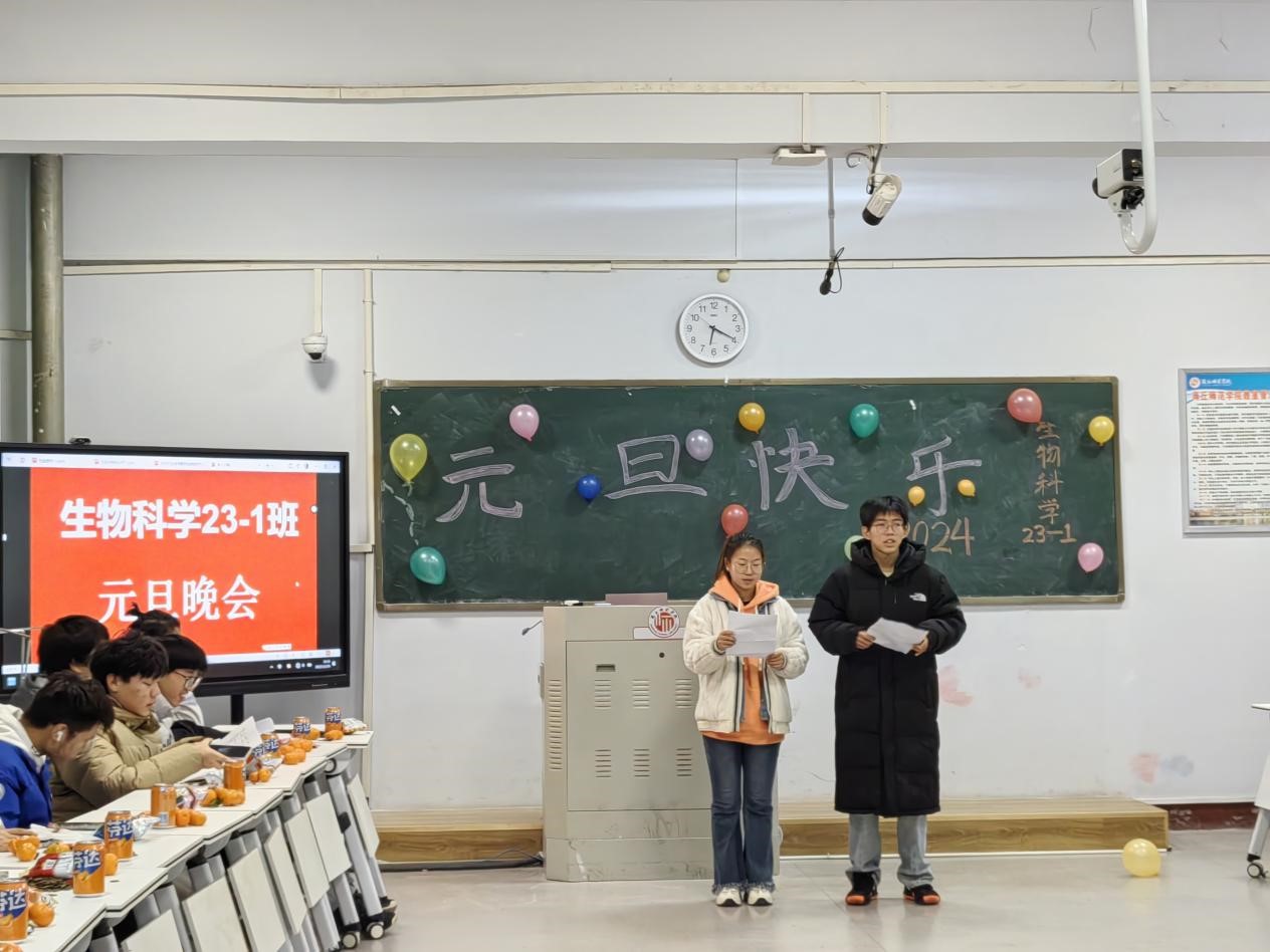 为了庆祝2024年元旦佳节,营造欢乐、祥和的节日氛围,充分展现公司师生多才多艺、团结奋进、昂扬向上的精神风貌,12月29日晚上,beats365中文官网生物科学23-1班在睢阳校区1号教学楼209教室成功举办元旦晚会。本次活动由陈芋芋、薛恽杰同学主持,在班主任徐亚军老师的指导与班委的积极配合下,顺利开展工作,生物科学23-1班全体员工积极参与。