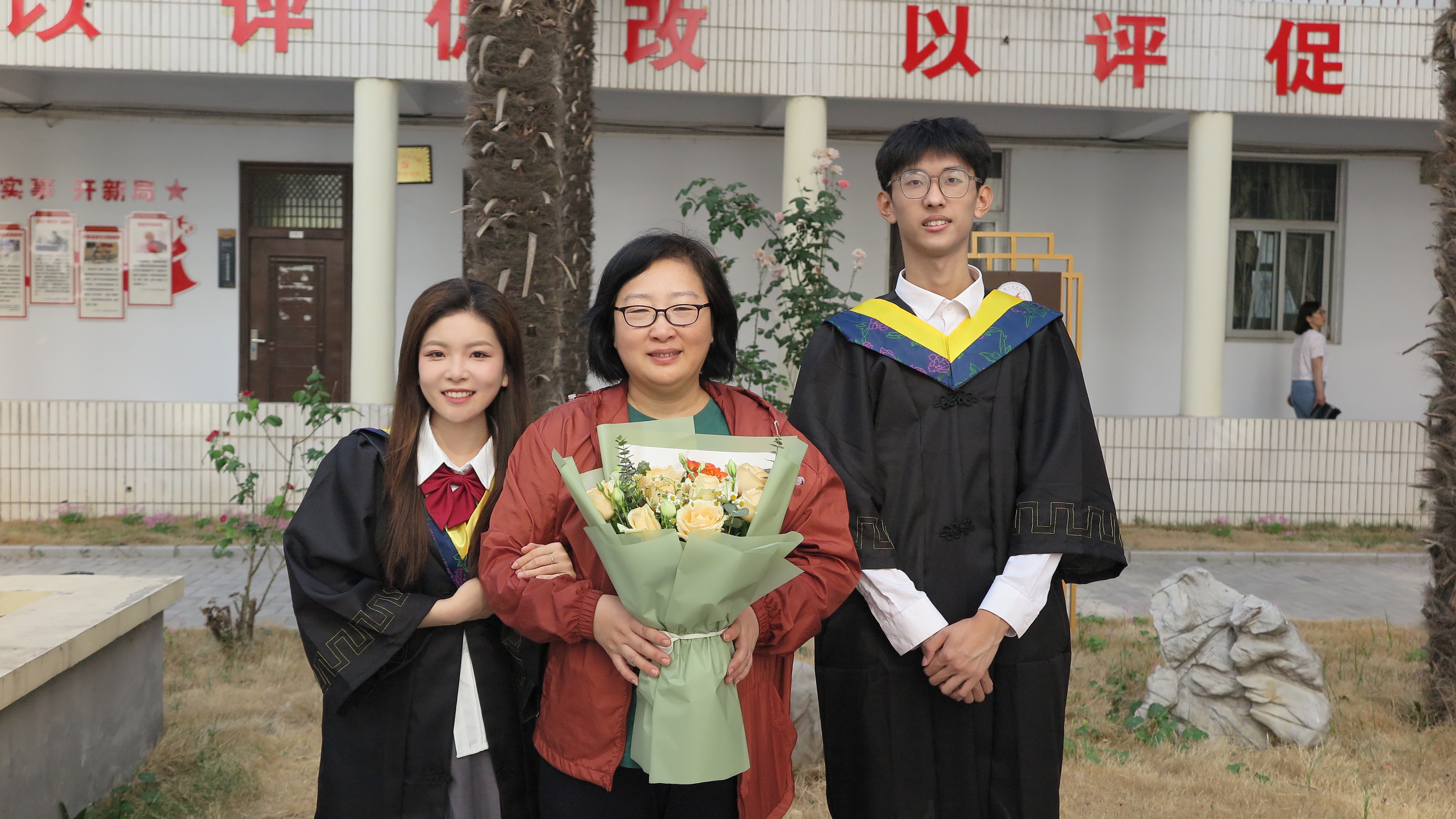毕业生拜访了各位任课教师、指导教师,将自己的心意送往公司各办公室,感谢各位老师四年来所付出的辛勤劳动和给予的帮助,与老师一起合影留念。