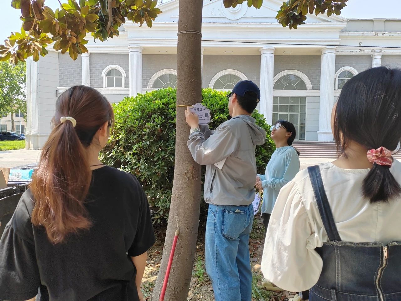 植物铭牌悬挂过程中,老师和同学们齐心协力,认真辨别植物种类,将铭牌挂在醒目位置。