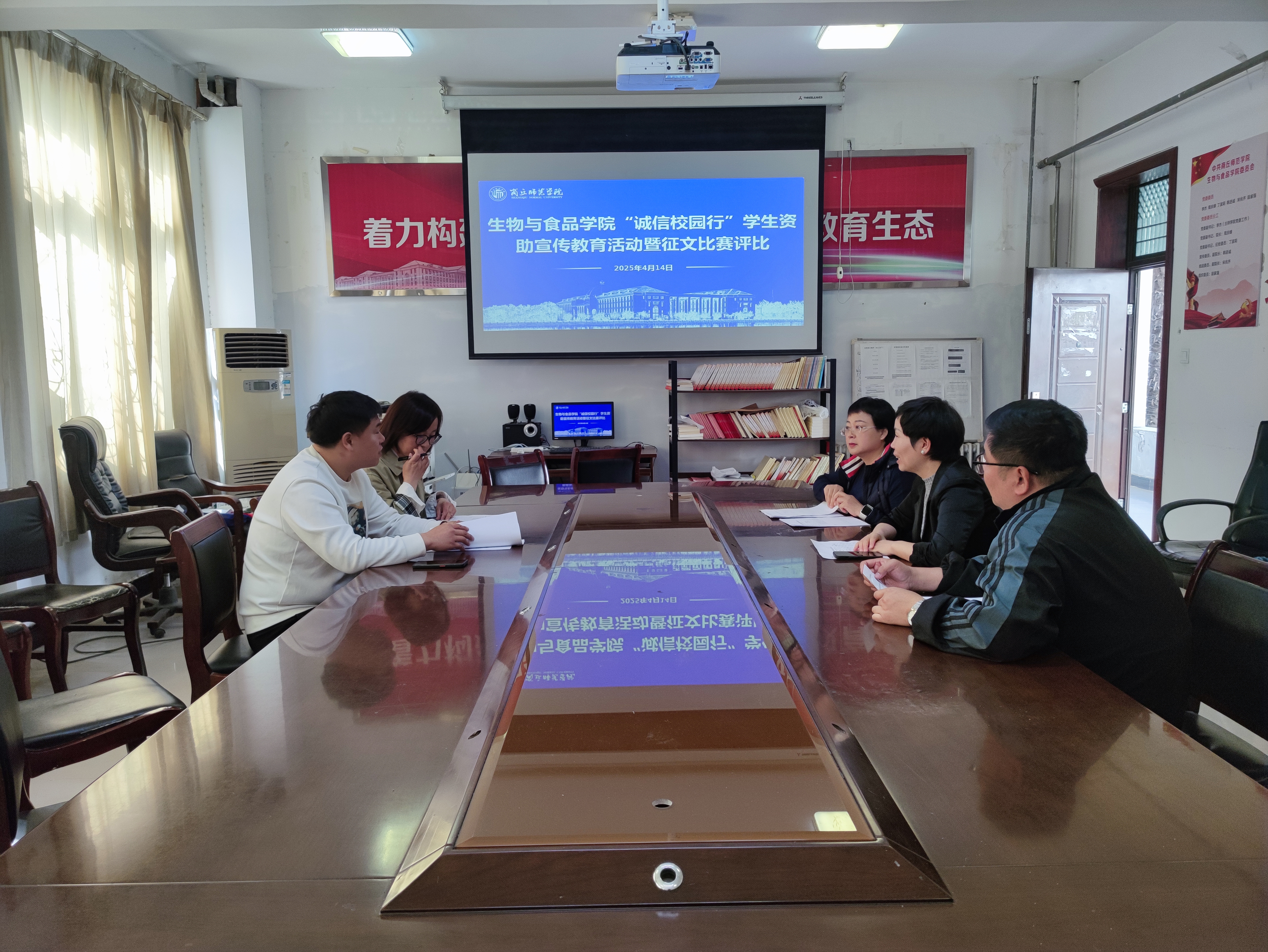 为深入推进员工资助政策宣传,强化诚信教育,4月14日,beats365中文官网于101会议室开展“诚信校园行”员工资助宣传教育活动暨征文比赛评审会。本次评审会由公司党委副书记李杰、丁波莉和全体辅导员进行评审。