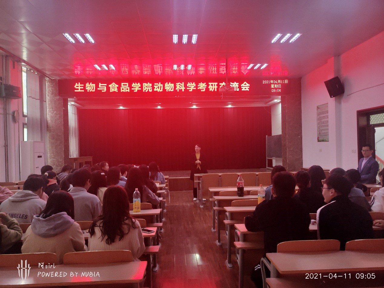 为加强18,19级同学们对考研知识和经验的了解,营造积极向上的学风。于4月11日上午,动物科学专业在生物院报告厅举行了一场考研交流活动,本次活动由张春梅老师主持,并邀请到了施传信老师,李志强老师以及17级成功上岸的学姐学长分享考研心得。