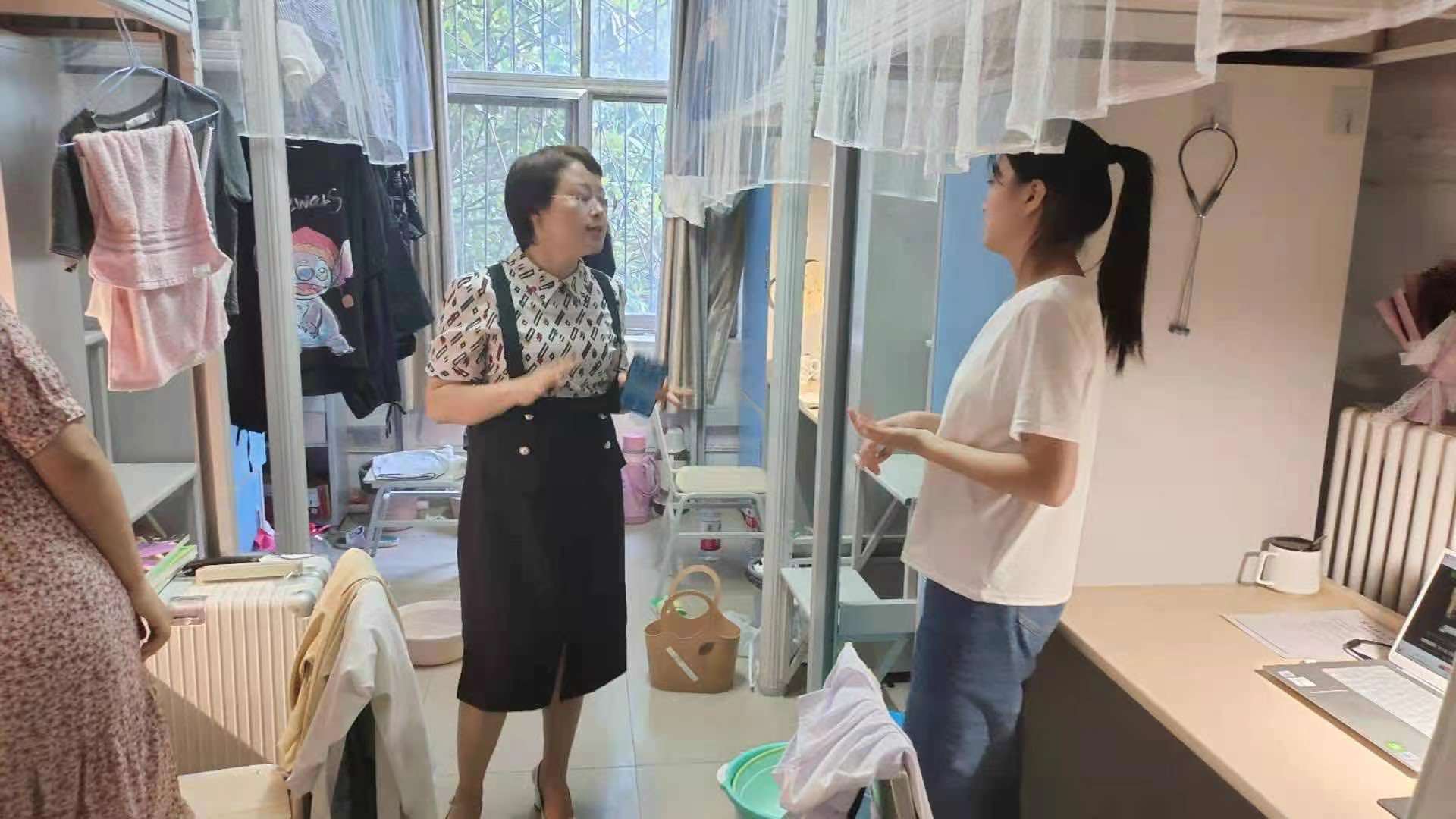 7月15日上午,公司党委书记朱震杰、副书记丁波莉和全体辅导员一行深入留校员工宿舍,检查疫情防控期间留校员工宿舍管理和学习生活情况。