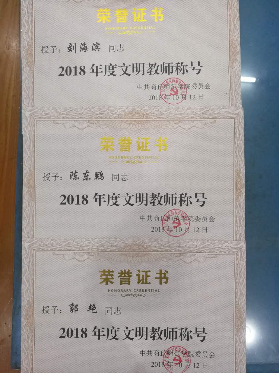 近期,公司党委对2017年度全文明教师进行表彰。公司陈东鹏、郭艳、刘海滨三名教师荣获“beats365中文官网2017年度文明教师”荣誉称号。