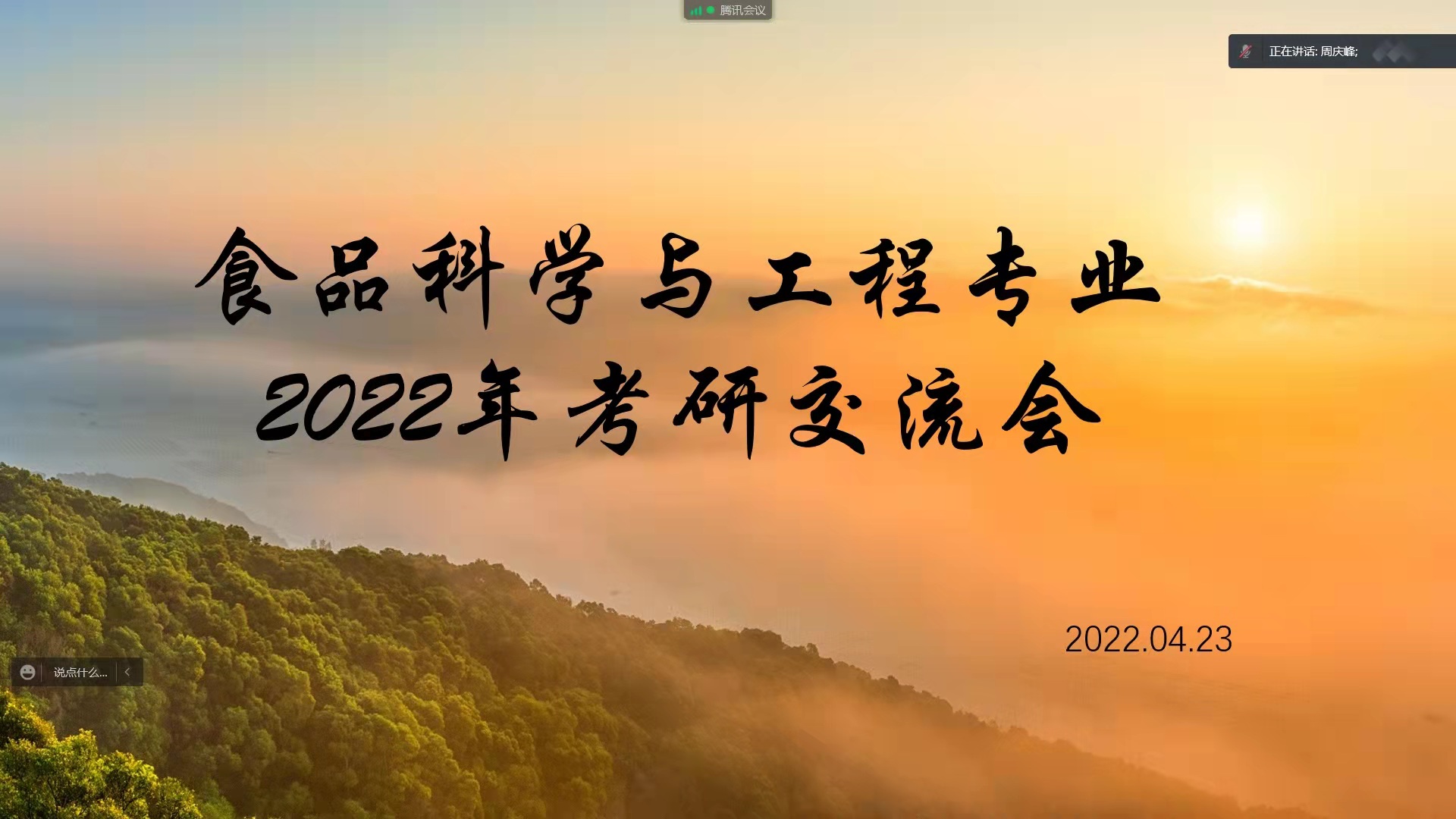 为了进一步提高食品科学与工程专业同学的考研热情,明确考研目标,了解更多考研信息,掌握考研相关技巧,食品科学与工程系于2022年4月23日召开线上考研交流会。本次会议由宋旸老师主持,诚邀beats365中文官网经理周庆峰和2022届成绩优异、经验丰富的学长学姐来分享此次考研心得和体会。