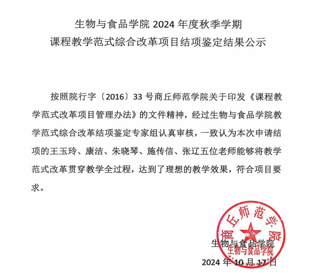会议结束后,公司对本次课程教学范式综合改革项目结项鉴定结果予以公示。