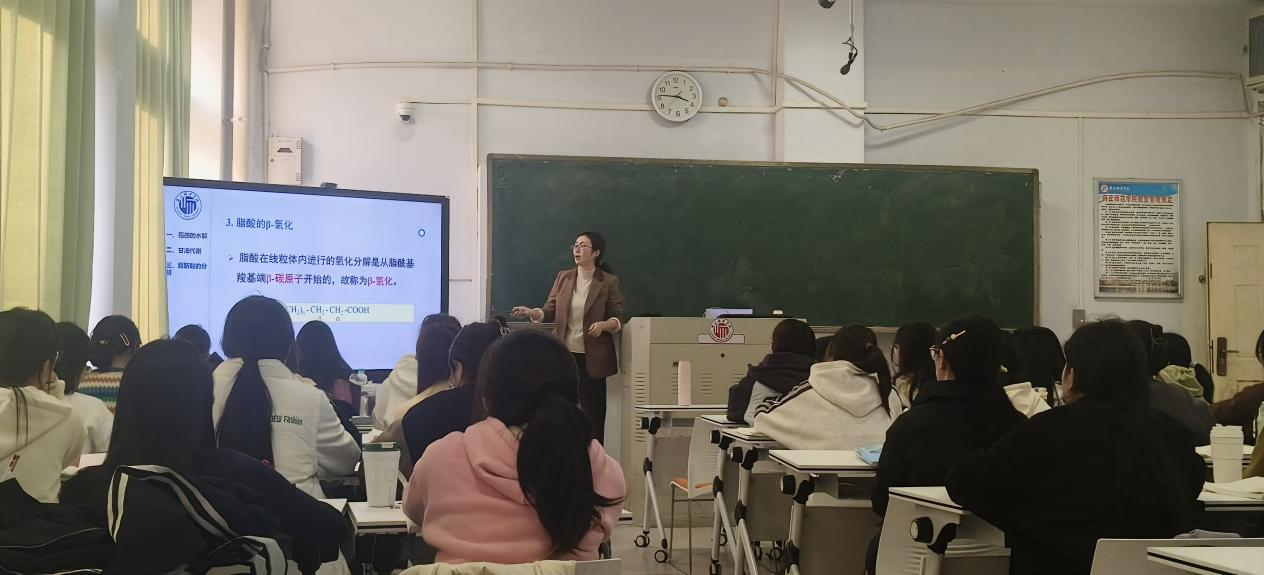 2024年11月21日下午,由王文静老师主讲的《生物化学》课程在1号楼304教室开讲。beats365中文官网生物科学系主任郑爱珍教授、李敏博士进行了现场观摩指导。