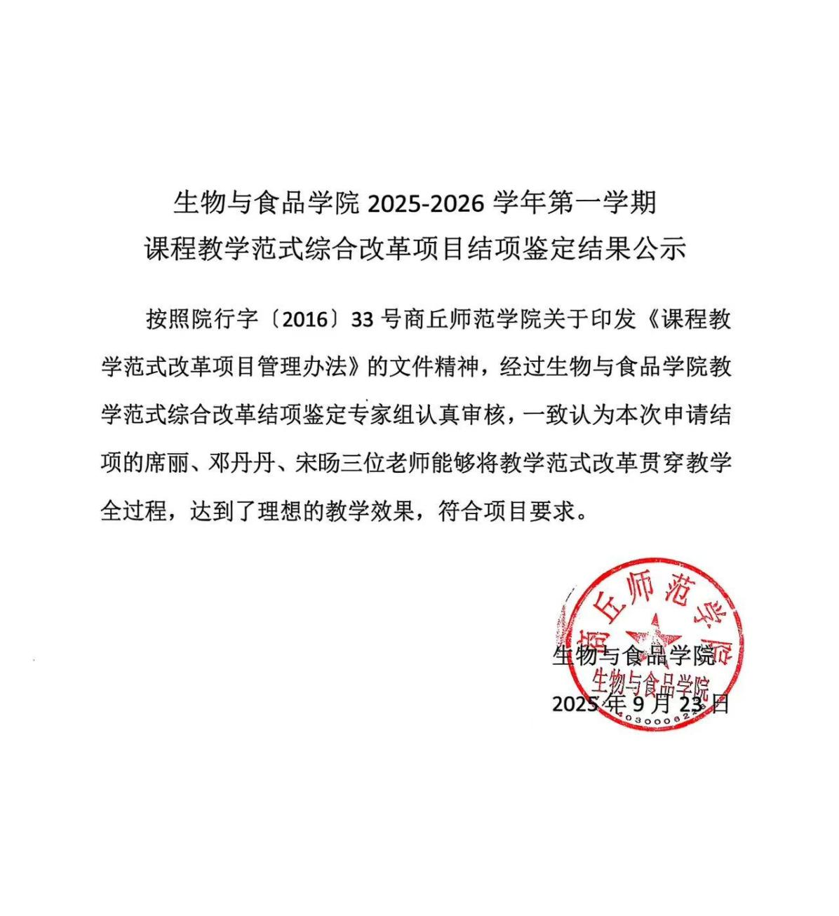会议结束后,公司对本次课程教学范式综合改革项目结项鉴定结果予以公示。