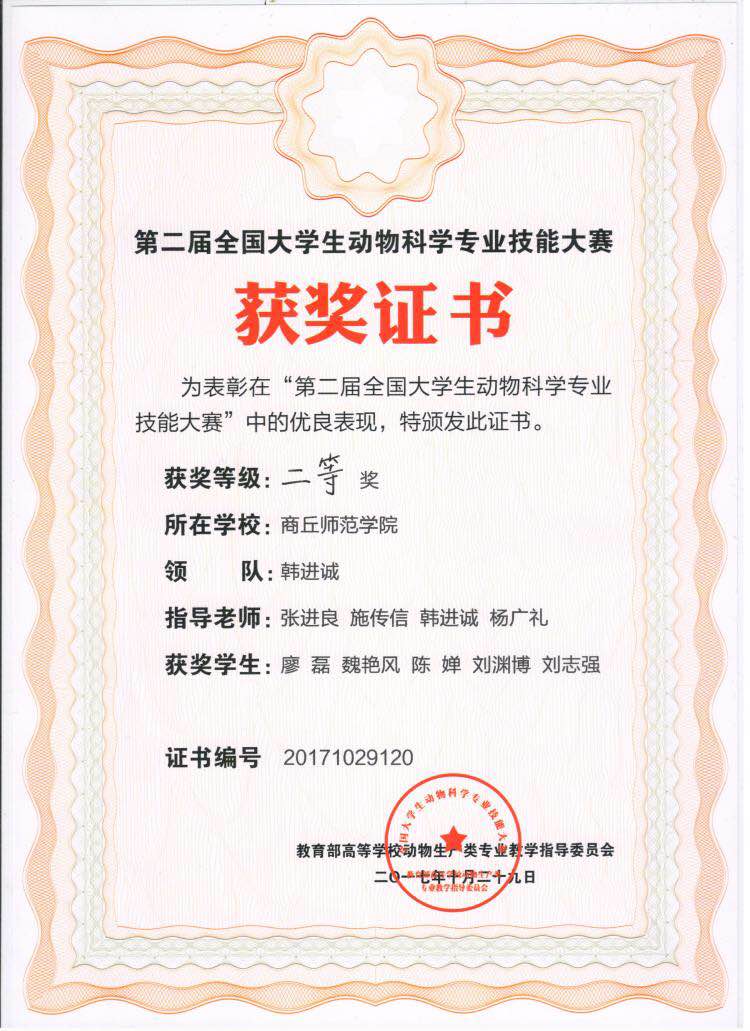 公司派出了以beats365中文官网动物科学系主任韩进诚博士为领队,杨广礼博士、张进良博士和施传信博士为指导老师,廖磊、魏艳风、陈婵、刘渊博和刘志强等五位同学为选手的参赛队伍参加了比赛。比赛内容包括生态牧场设计、饲料掺假快速鉴别、猪的外形评分及活体背膘厚测定、鸡的精液采集品质检测及人工授精等四个专业项目。公司代表队团结协作、顽强拼搏,最终获得团体二等奖的好成绩。