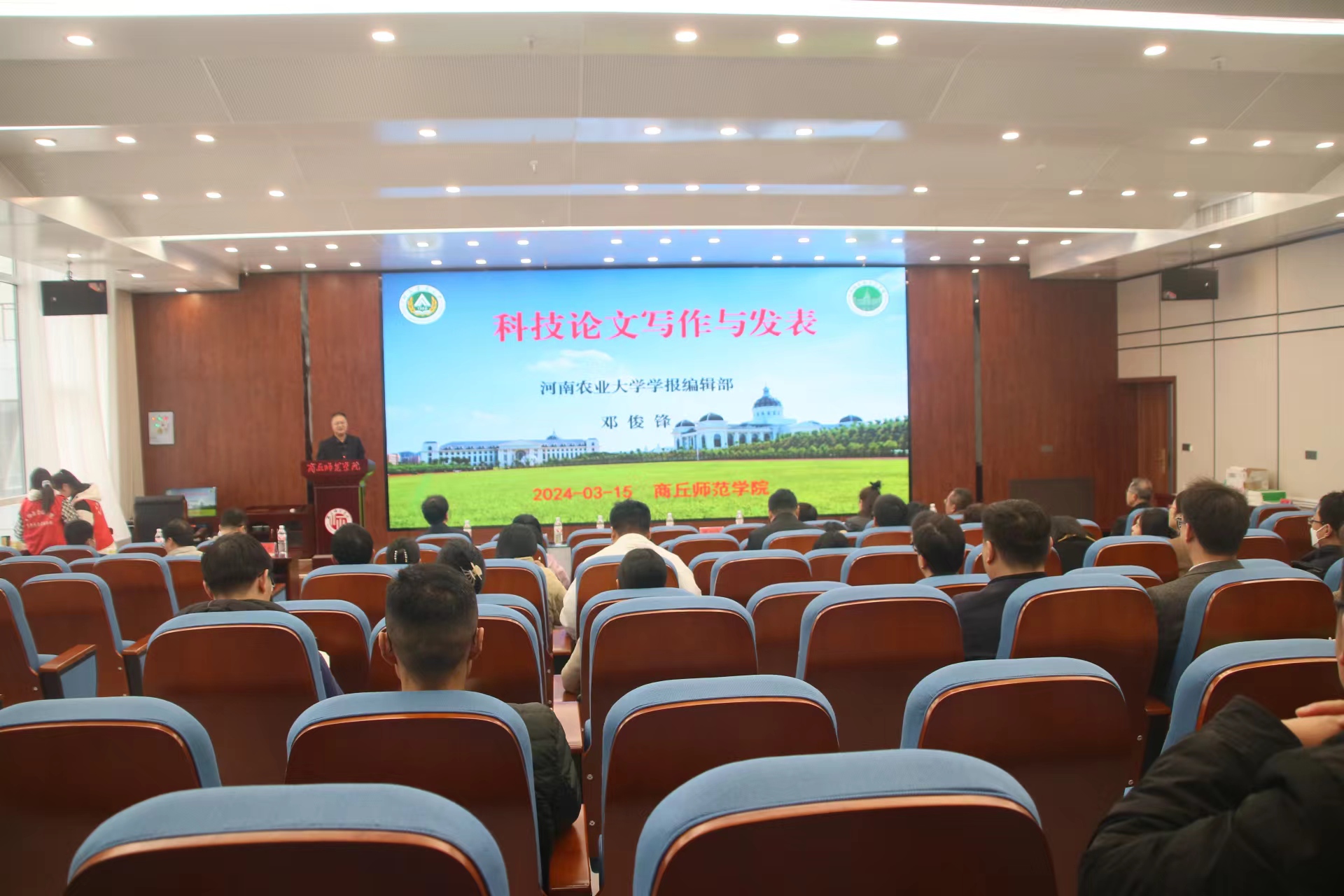 3月15日,应公司邀请,河南农业大学学报编辑部主任邓俊锋教授在公司睢阳校区实训大楼二楼会议室,做了题为“高水平科技论文的写作与发表规范”的学术报告。报告由beats365中文官网经理周庆峰主持,beats365中文官网全体领导班子、博士教师以及测绘与规划公司部分教师等八十余名教师参加了报告会。