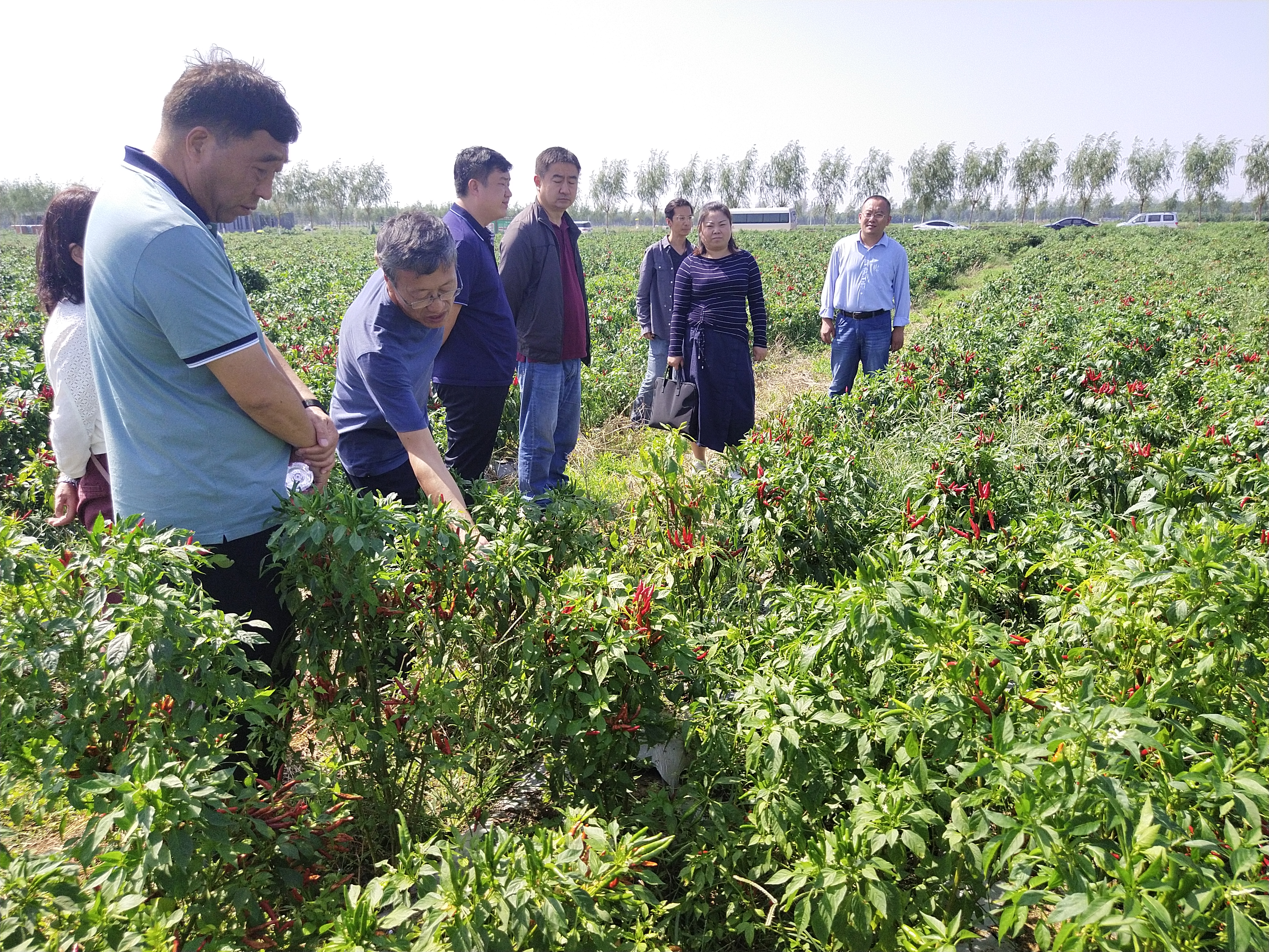 2021年9月30日上午,河南省种子站、商丘市种子站4位专家莅临公司beats365中文官网“干制辣椒产业技术研究中心”柘城育种基地,对公司申报的辣椒新品种商师1号、商师2号和商师3号3个品种进行田间鉴定。beats365中文官网副经理韩进城、裴冬丽,干制辣椒产业技术研究中心主任刘冬梅,beats365中文官网洪权春博士、徐园园博士参加了品种登记现场观摩会。