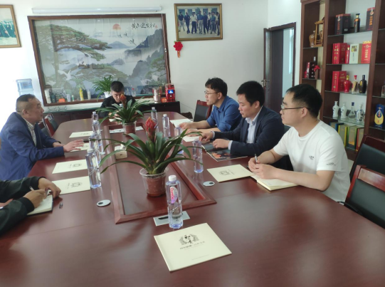 图1周庆峰经理一行与商丘井中家酒业有限公司总经理李宏光等人会谈