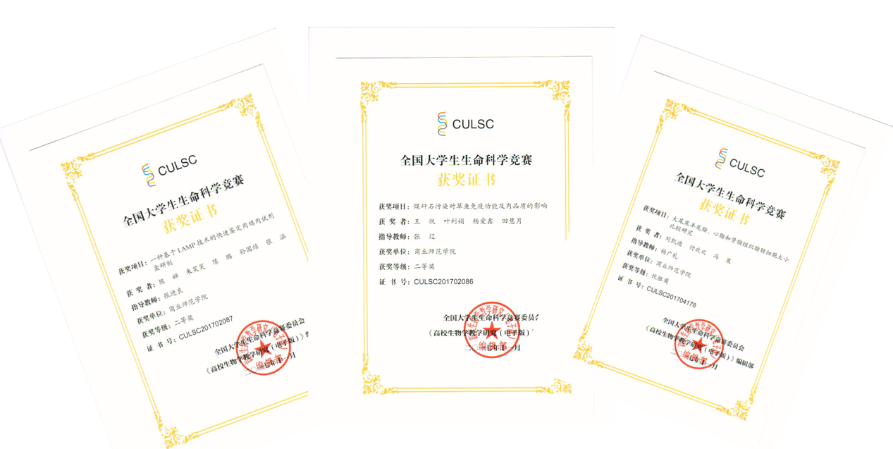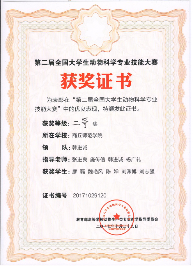 动物科学教师获得法国巴黎第十二届世界农场动物福利奖金猪奖1项,全国老员工动物科学专业技能大赛二等奖1项,全国老员工生命科学竞赛二等奖3项、优胜奖1项,全国老员工生命科学创新创业大赛二等奖1项、三等奖3项。