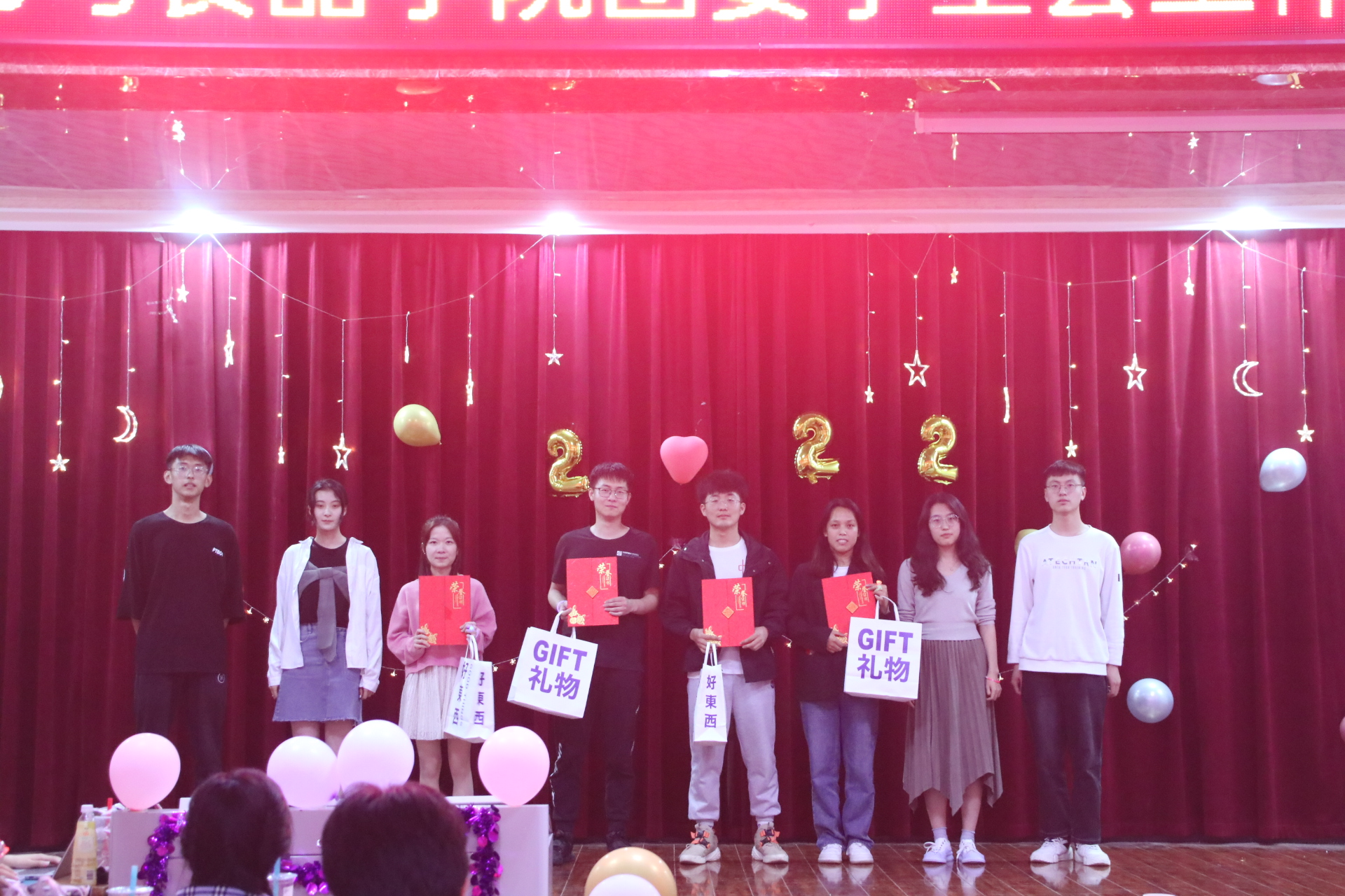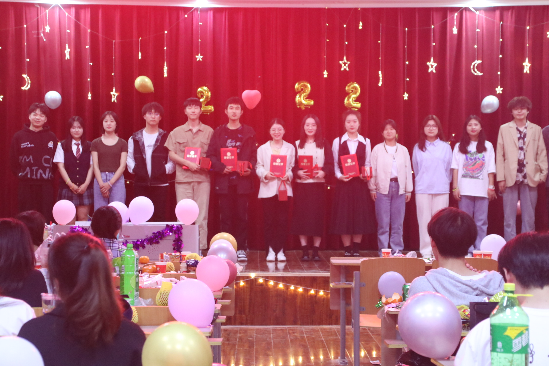 各部门节目演罢,现场玩起了击鼓传花的小游戏,18级、19级、20级团委员工会主席黄佳翔、朱德良和孙政被选中表演节目。朱德良和孙政分别演唱了一首歌曲,黄佳翔表演了一小段舞蹈,将全场的气氛拉到顶点。终于,活动到了最激动人心的颁奖环节,各部门轮流上台给大三学长学姐颁奖。最后,全体人员合影留念。
