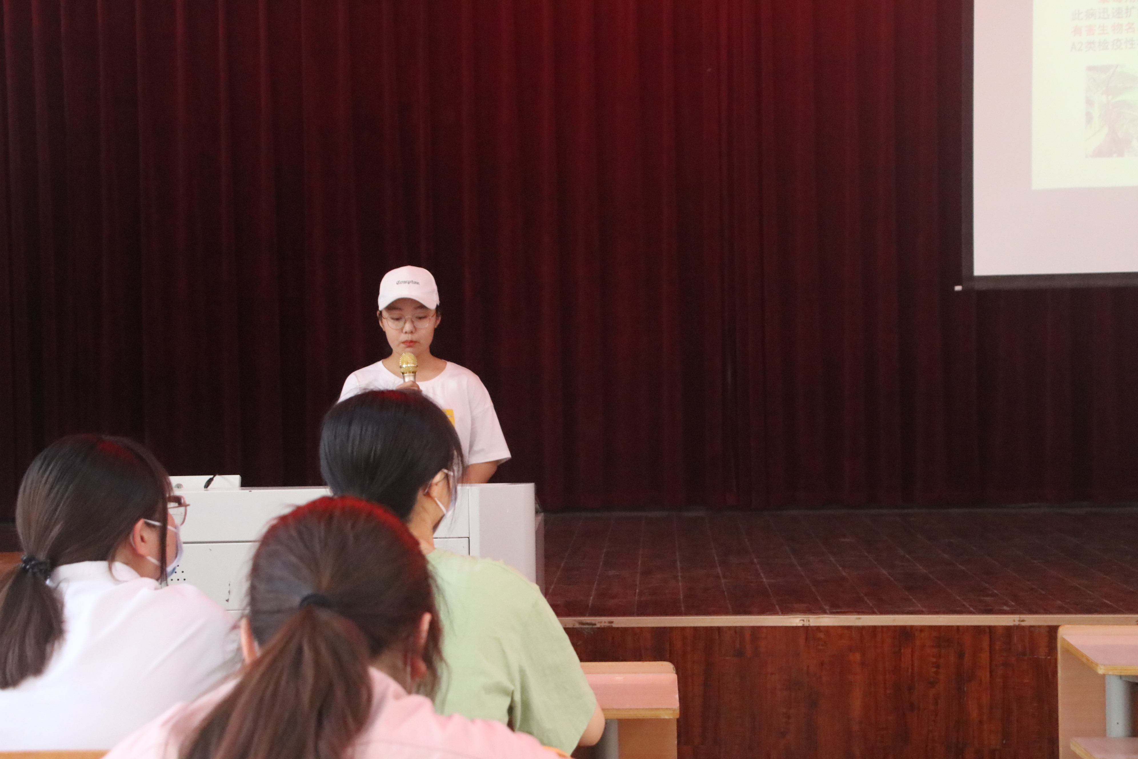 各团队项目伍负责人在生物院报告厅讲解自己的ppt,并由公司团委创新创业部门进行组织与记录工作。