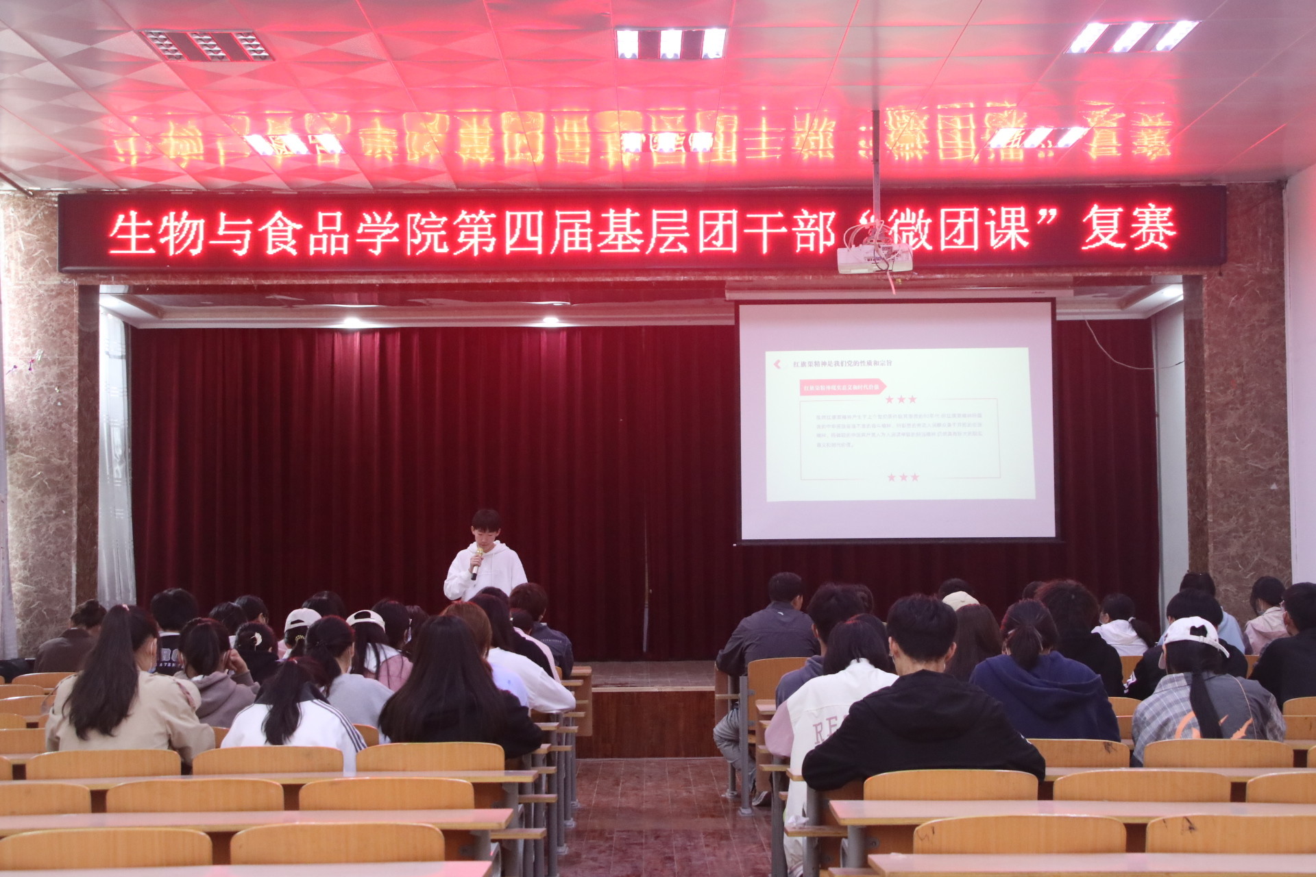 为了进一步加强基层团干部对“微团课”的认识,充分调动beats365中文官网基层团干部对党史、团史学习的积极性,提高基层团干部的思想理论水平和政治素质,beats365中文官网于2022年4月14日中午12:30在本院报告厅举办第四届基层团干部“微团课”复赛。初赛晋级的六位年级团支书参与此次复赛。