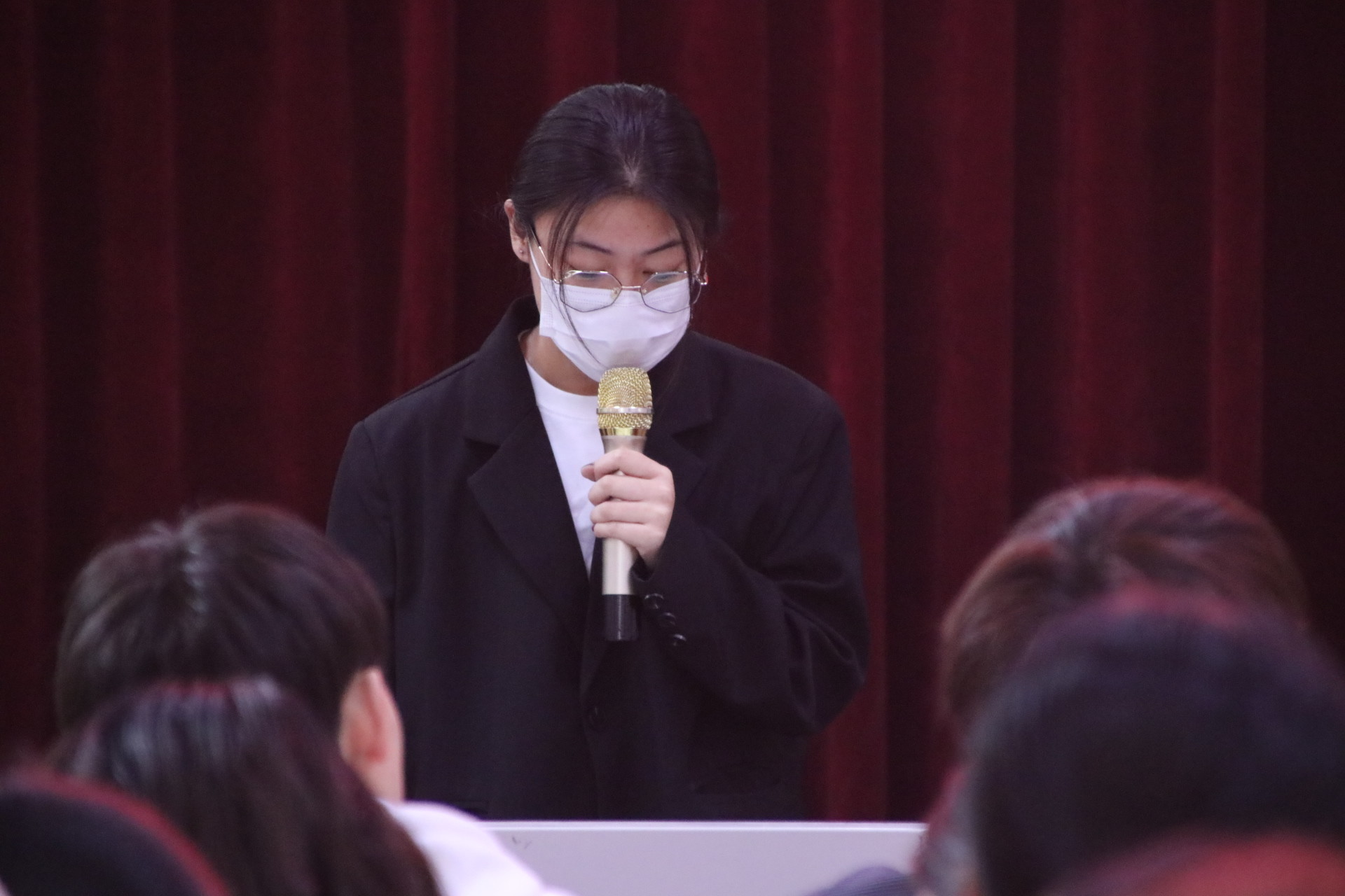 主持人开场致辞后,比赛正式揭开序幕。比赛过程中,六位选手依次上台汇报,先后围绕学党史的目的和意义、红旗渠精神、大别山精神、党史学习意义以及五四精神展示各自的“微团课”。