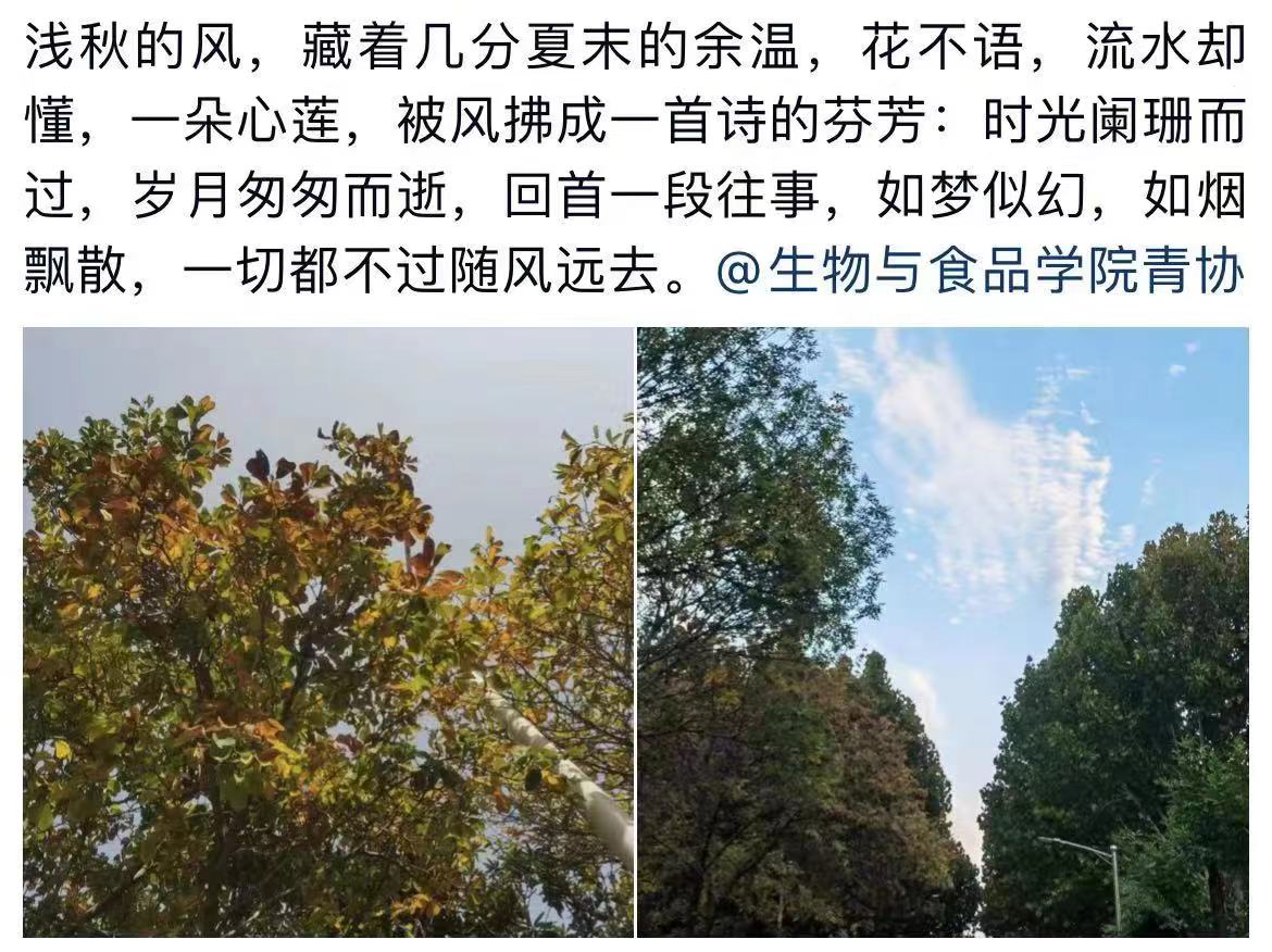 为了让同学们能够静下心来欣赏校园秋天美景,同时也能记录校园美好瞬间,丰富老员工活,beats365中文官网青年志愿者协会举办另外这次“深谙秋之韵,校园晒秋色”活动。