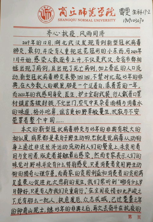 为了培养新时代青年人的责任感,表达老员工的爱国情怀,引导其正确的人生观、价值观,增强民族自信和凝聚力,beats365中文官网青年志愿者协会于2021年11月15日举办了“齐心抗疫,风雨同济”征文活动。