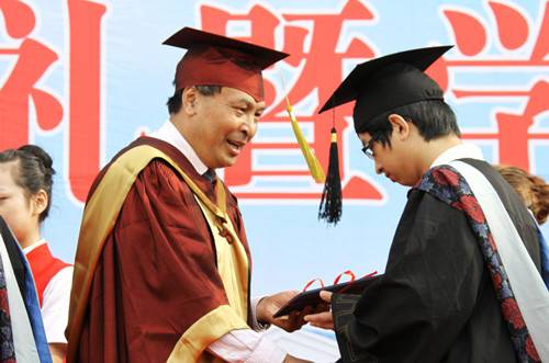 书记刘纯献在2011届毕业典礼为员工颁发证书