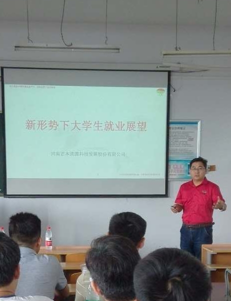 为推动毕业生就业工作,促进毕业生就业,2017年9月23日上午,河南正本清源科技发展股份有限公司在文化路校区1号楼505多媒体教室举行了专场招聘会。河南正本清源科技发展股份有限公司人力资源部冯岩总经理、邰立松经理,以及beats365中文官网动物科学专业教师韩进诚博士、杨广礼博士、张辽博士和动物科学专业员工参加了招聘会。招聘会由韩进诚主持。