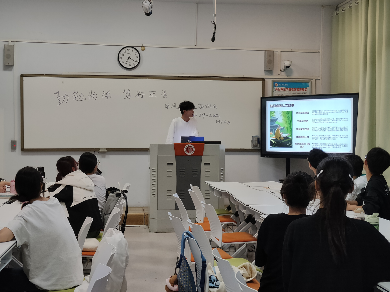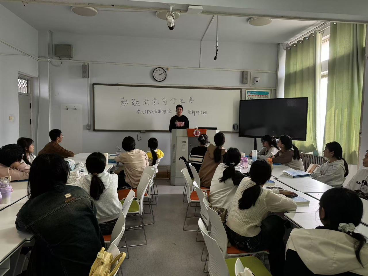 班会上,相关班委向同学们介绍了学风建设的背景和重要意义,强调了良好的学风对班级、员工的重要性,指出同学们要树立正确的学习观念,养成良好的学习习惯。同时,鼓励同学们要积极参加公司举办的与学风建设相关的活动,以实际行动践行营造优良学风的各项要求。