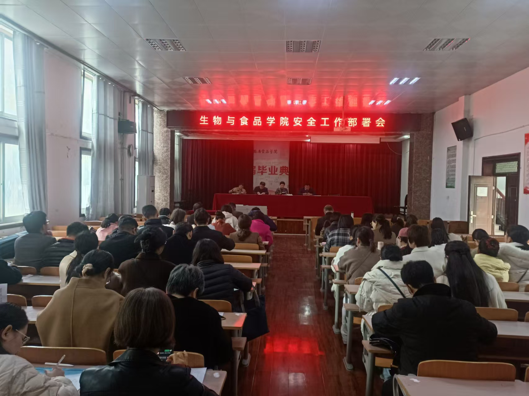 会上,传达了上级关于校园安全工作的指示精神。会议强调,身为高校教师要时刻坚守教师使命,强化责任担当,牢固树立安全意识,提高辨别危险和应对突发事件的能力,不断推动和谐校园建设。