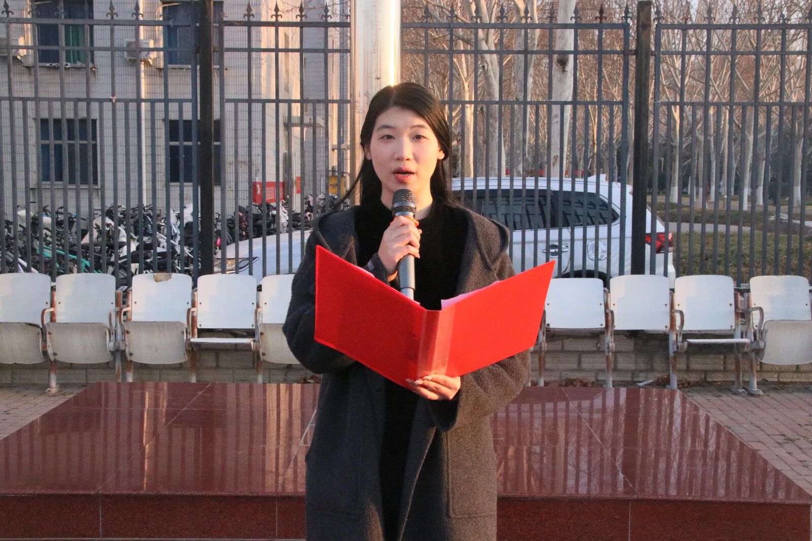 员工代表陈若涵进行国旗下演讲。呼吁同学们践行文明礼仪,提升个人修养,延续文化血脉。
