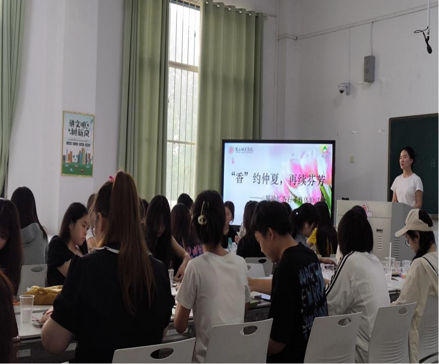 本次实践环节为扩香石手作,于2025年6月8日在梁园校区行方楼进行。近200名选修员工及部分芳香精油爱好者参与活动,并分成四组进行实践。