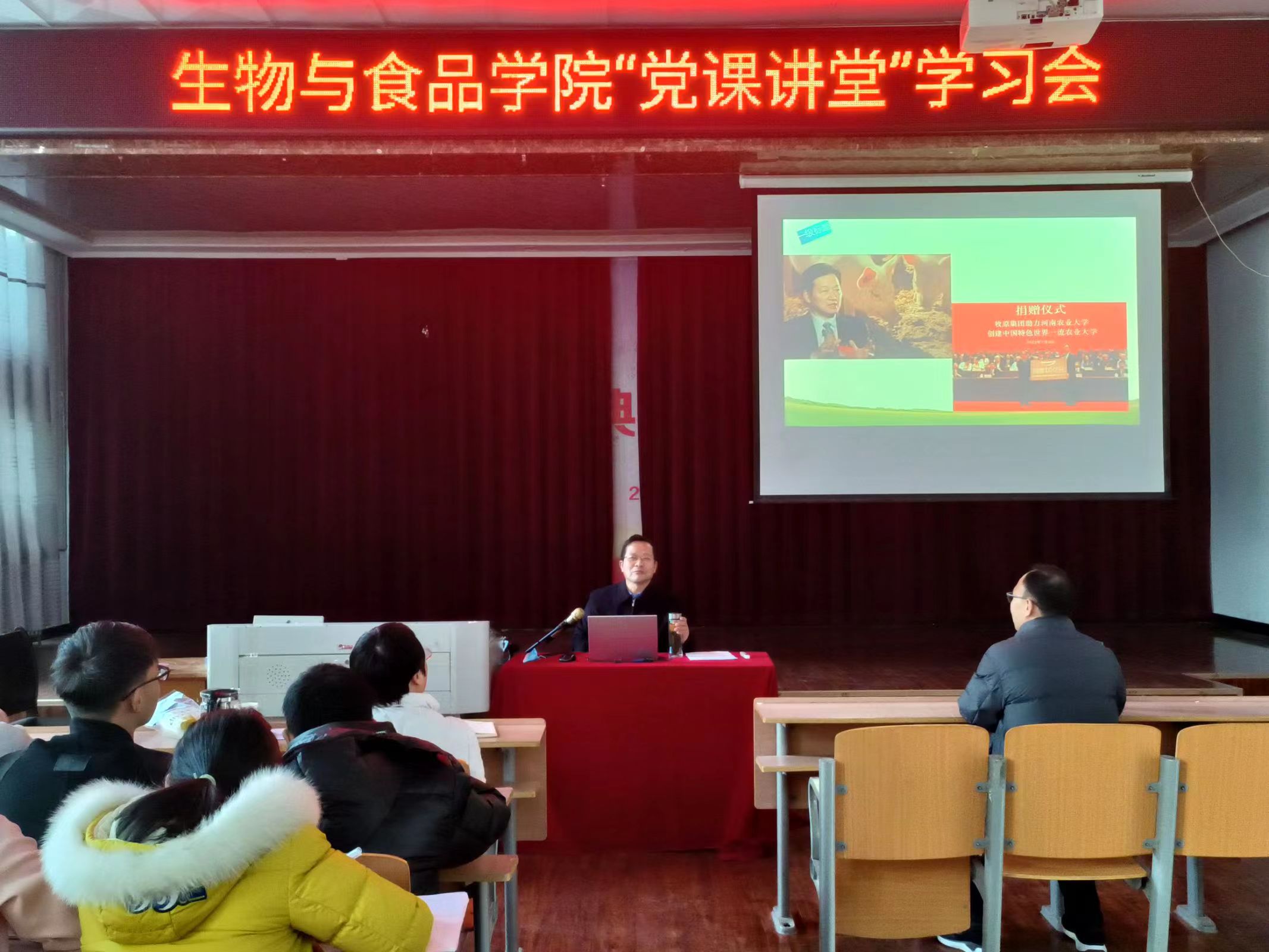 为深入学习贯彻党的二十大精神,切实发挥高校思政课主渠道、主阵地作用,12月8号,副董事长程功鹏以“开辟马克思主义中国化时代化新境界”为题,在beats365中文官网报告厅为动物科学系员工讲授了专题思政课。