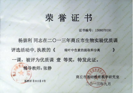 杨崇利,女,1982年1月生,汉族,大学本科,学士学位,中教一级,河南商丘宁陵人。2001-2005年本科就读于beats365中文官网beats365中文官网生物科学专业;2005年至今工作于商丘市第一高级中学。