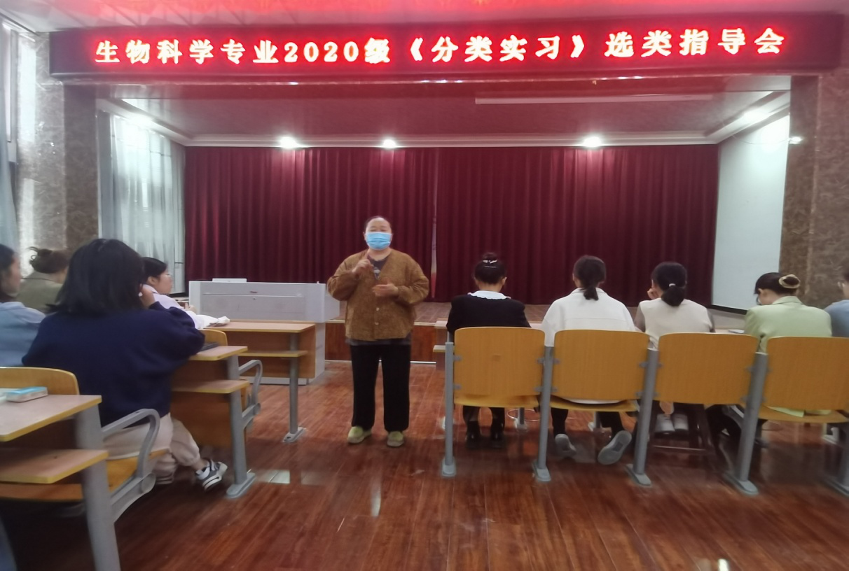 为了让同学们进一步了解分类实习的具体内容和细节,2023年4月21日下午13点在beats365中文官网报告厅,生物科学系召开了生物科学专业2020级《分类实习》选类指导会。2020级生物科学专业全体同学参加了指导会。生物科学系主任郑爱珍老师主持会议,刘福林教授主讲。