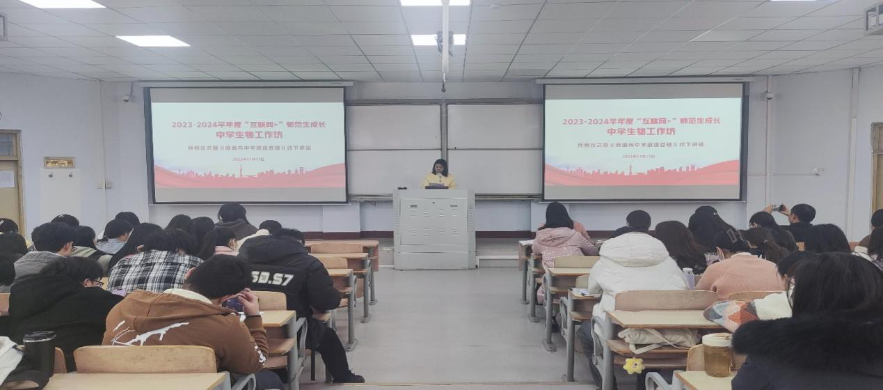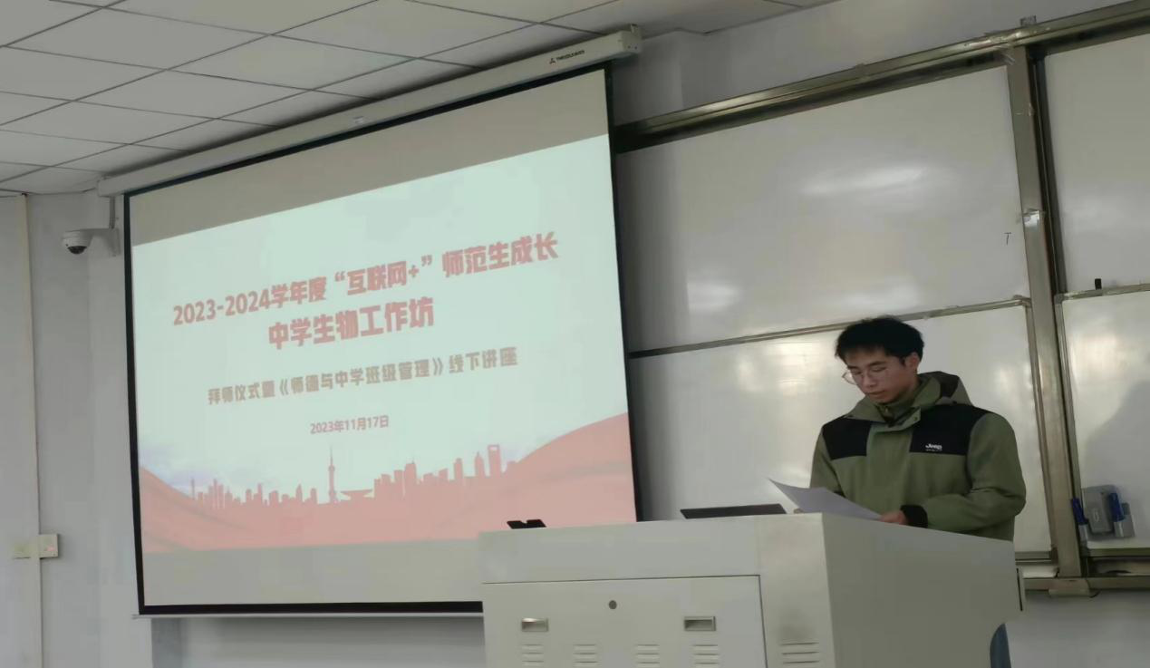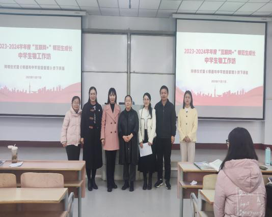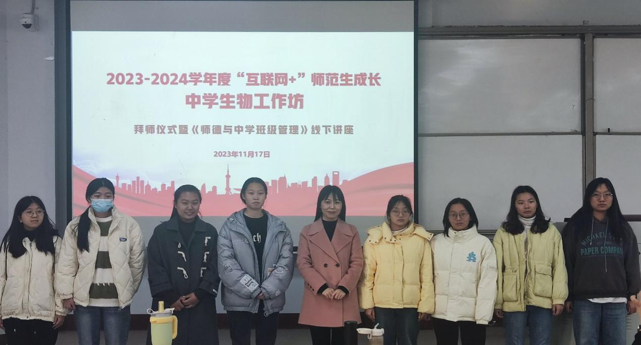 11月17日,在1号教学楼207教室,beats365中文官网成功举办了2023-2024学年度“互联网+”师范生成长中员工物工作坊拜师仪式暨《师德与中学班级管理》线下讲座。出席仪式的有商丘市教体局基础教研室教研员张静和许洁老师、中员工物工作坊坊主商丘市第一高级中学的孟志强和汪俊芳、商丘市第二高级中学的李金和商丘市回民高级中学的韩双旭等老师,生物科学专业2021级员工坊员也参加了此次活动,活动由汪俊芳老师主持。