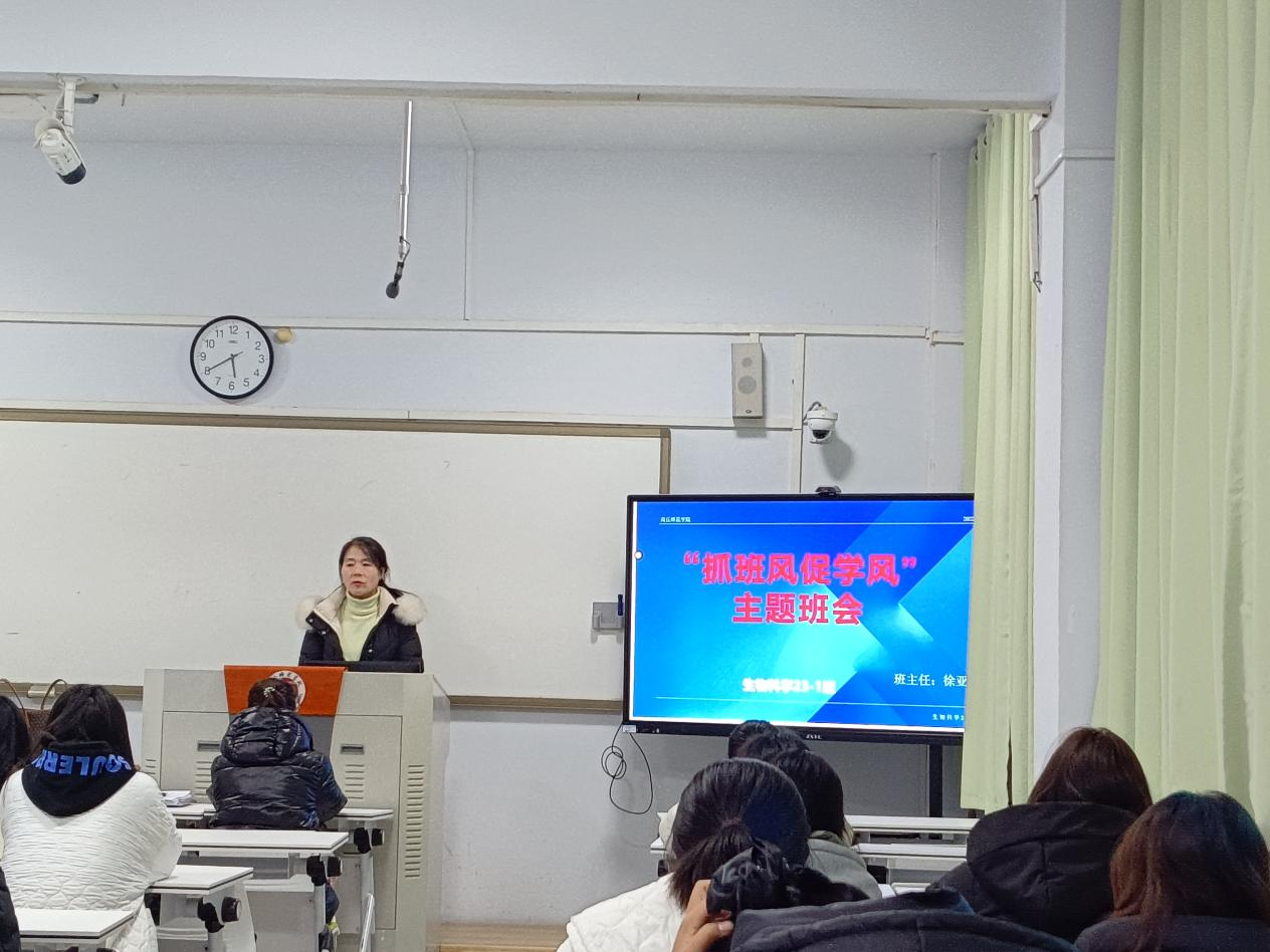 为了帮助员工树立正确的学习观念,培养良好的学习习惯,营造积极的学习氛围,beats365中文官网生物科学23-1班于12月21日在一号楼214教室成功举办了以“抓班风促学风”为主题的班会活动。本次班会由生物科学23-1班班主任徐亚军主持。