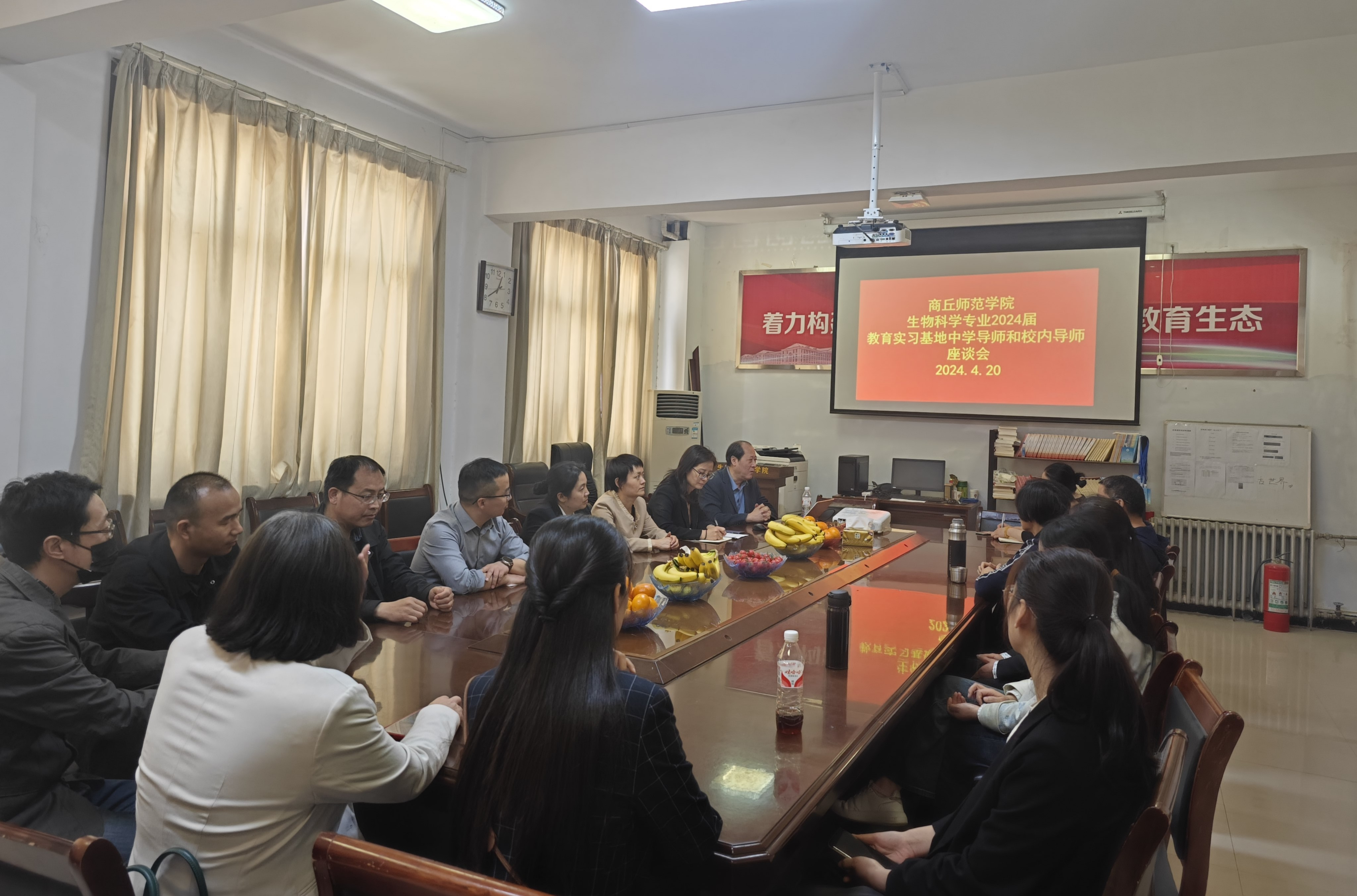 2024年4月20日中午,生物科学专业在院会议室召开了2024届教育实习基地中学导师与校内导师座谈会。参加座谈会的有商丘市第一高级中员工物学科主任、中原名师、高级教师刘爽、商丘市第二高级中员工物学科主任、高级教师石志伟、商丘市第三高级中员工物学科主任张琳浩、商丘市第四高级中员工物学科主任杨玉彩、商丘市实验中员工物学科主任张士乔、商丘市回民高级中员工物教师魏子涛,生物科学系主任郑爱珍、生物科学系副主任马丽,以及生物科学专业全体校内导师。座谈会由省级教学名师刘福林教授主持。