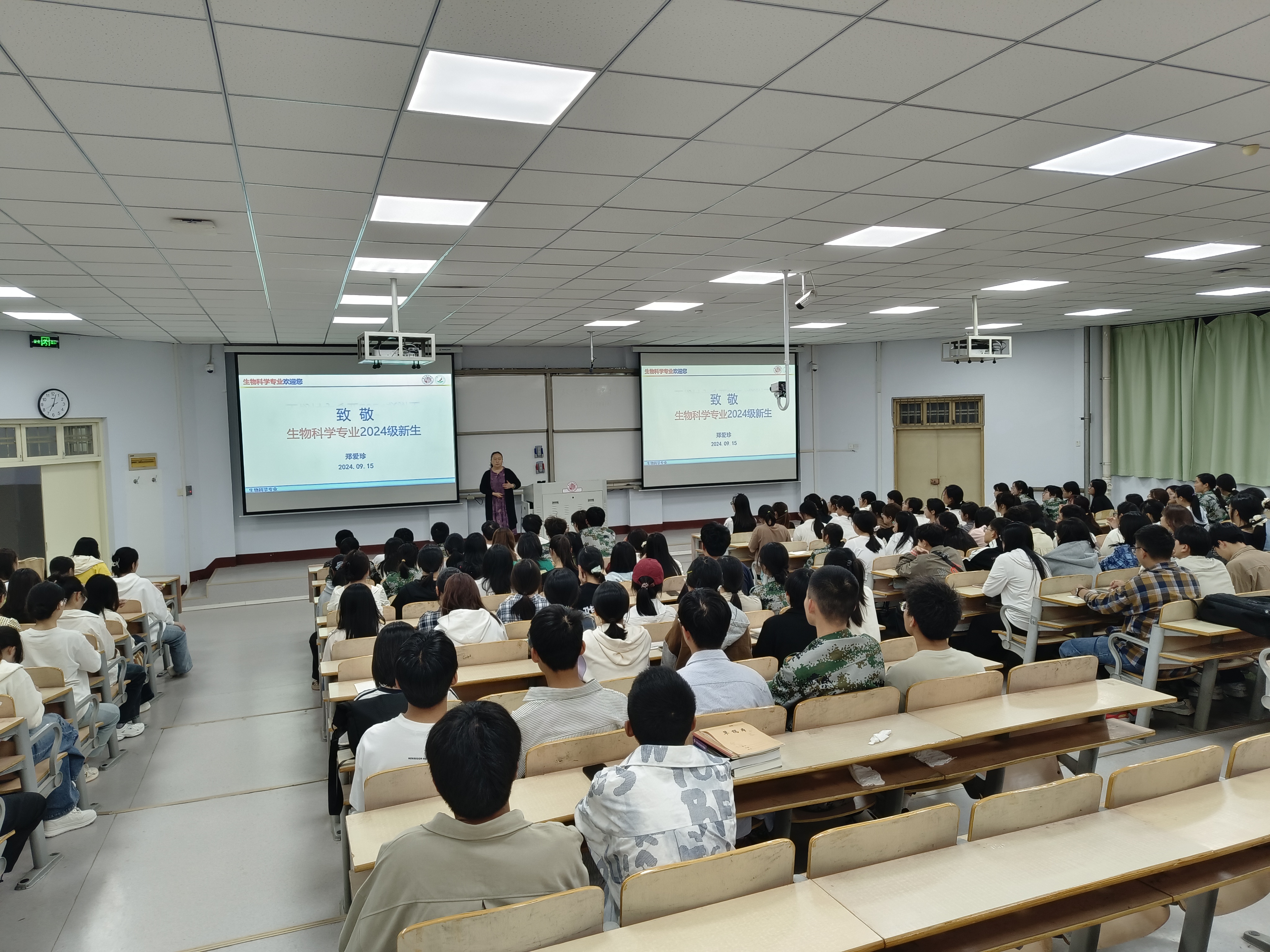 为了增强新生的专业意识,2024年9月21日晚7点,在睢阳校区1号教学楼207教室,生物科学专业召开了2024级新生入学专业教育大会。系主任郑爱珍主持会议并致欢迎词,专业带头人、河南省教学名师刘福林教授主讲。