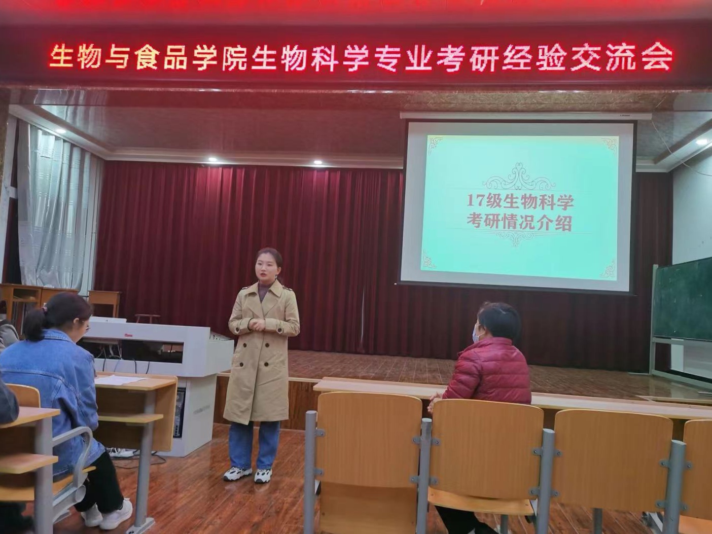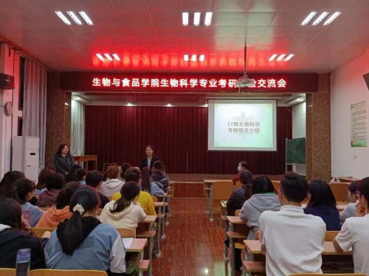 2021年4月15日,beats365中文官网在院报告厅召开了由生物科学专业2018级承办、班主任王玉玲老师负责组织实施的“未来名师训练营”系列活动之学会发展------考研经验交流会。到会的有:系主任郑爱珍、班主任徐亚军、王玉玲两位老师、生物科学专业2018级全体员工,以及考研成绩优异、考研经验丰富的部分2017级员工。本次活动由2017级班长符可主持。