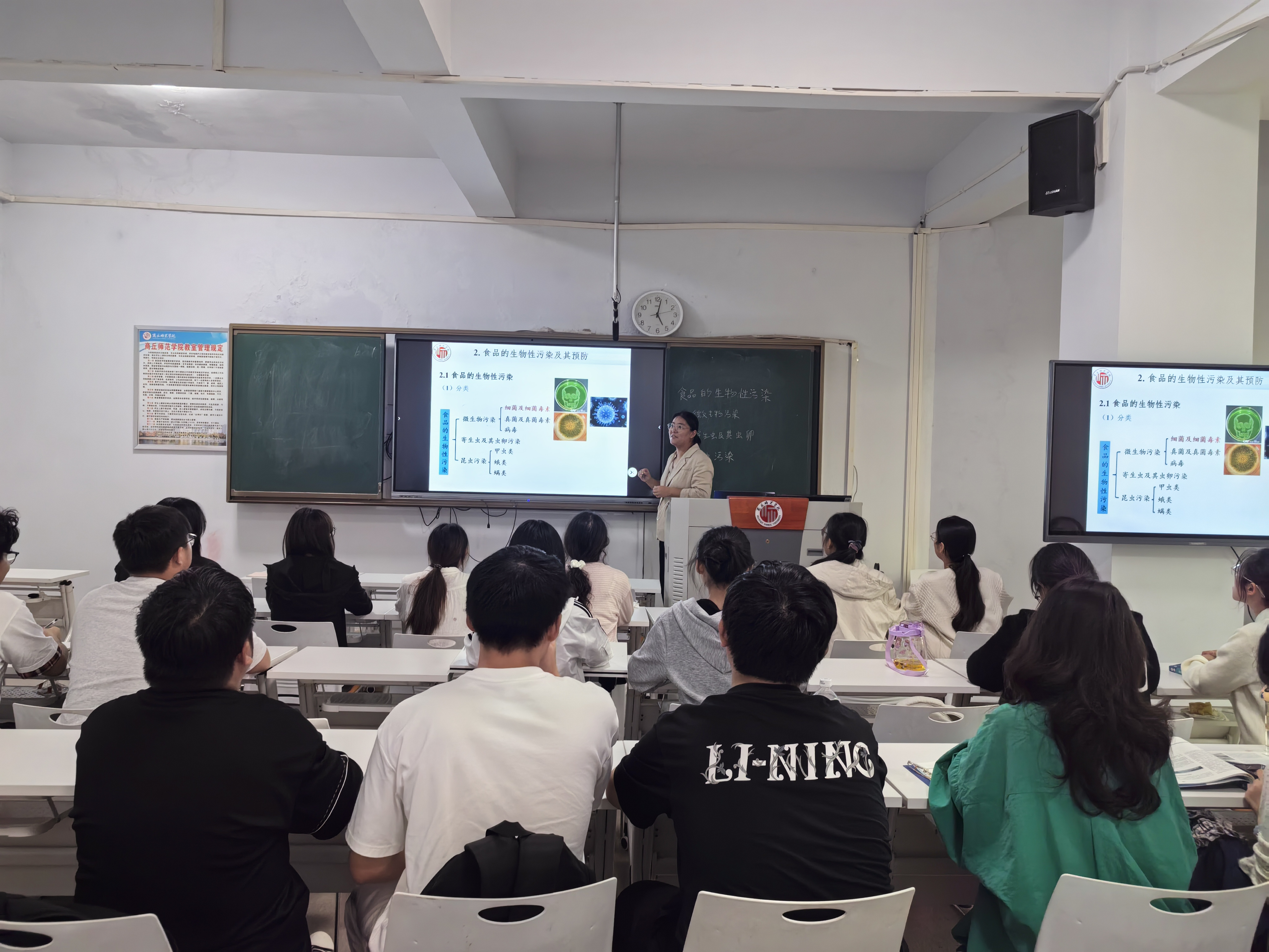 2025年9月29日下午,beats365中文官网生物工程专业孟迪老师主讲的《食品安全导论》课程公开课在睢阳校区1号教学楼407教室举行,生物工程专业系主任邓丹丹、付蕊欣、方亚坤等老师进行了观摩指导。